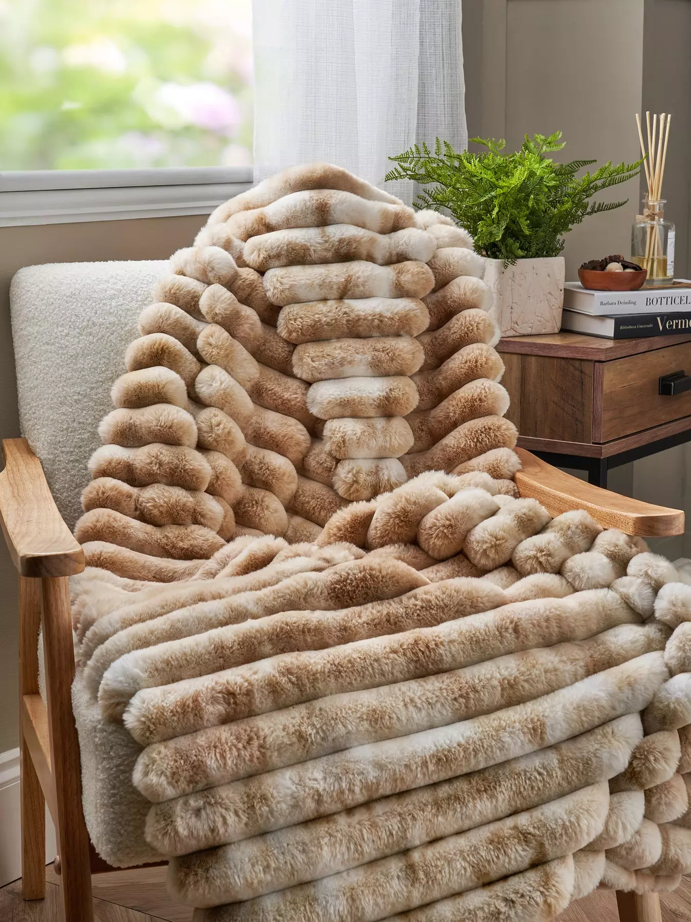 - Indulge in the incredibly soft feel of our Marled Rib Faux Fur Throw.