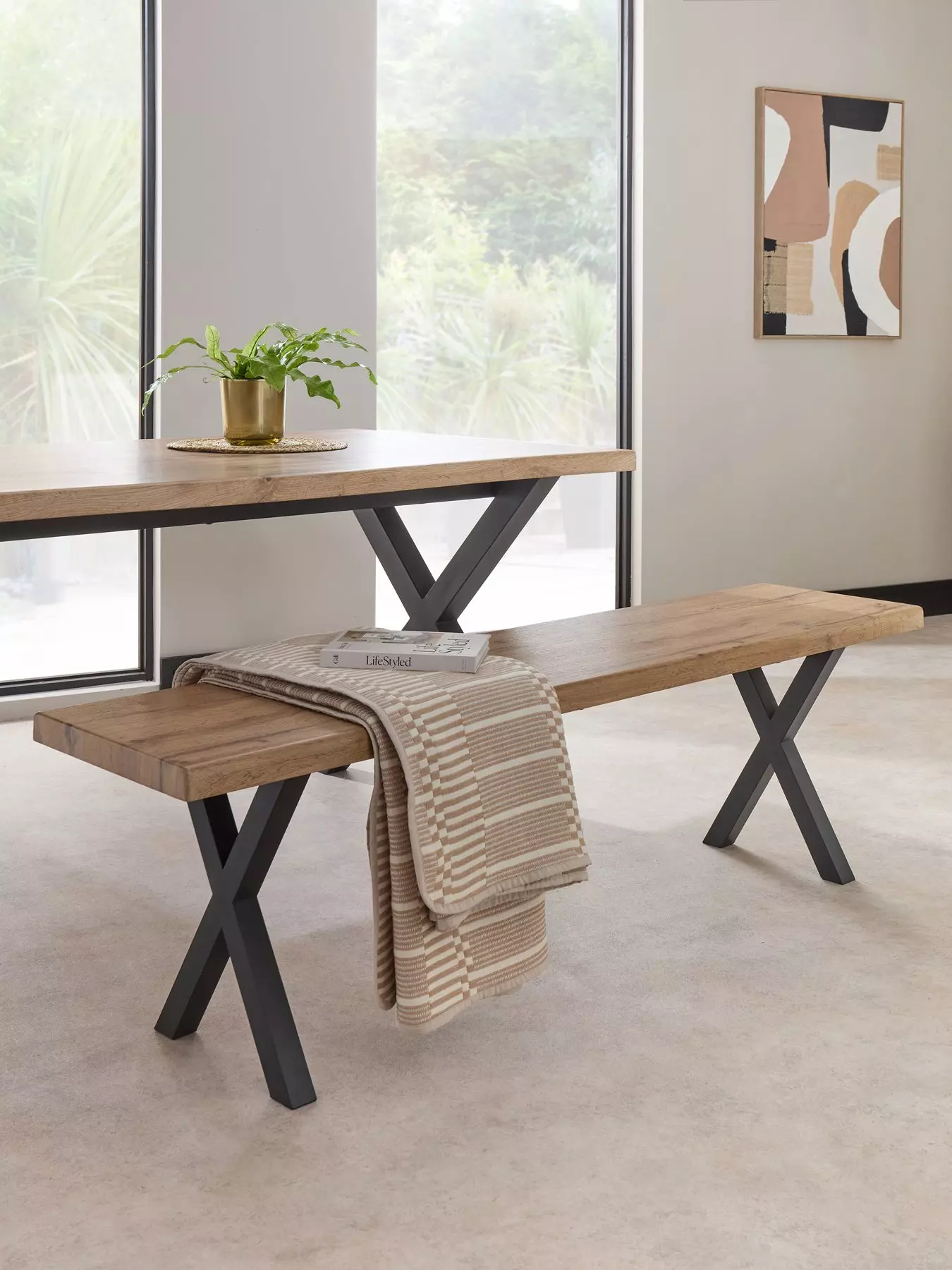 Relaxed dining is made easy with this bench by The Very Collection. The oak-effect top is contrasted by black metal legs, and it measures 160 cm in width.Dimensions: