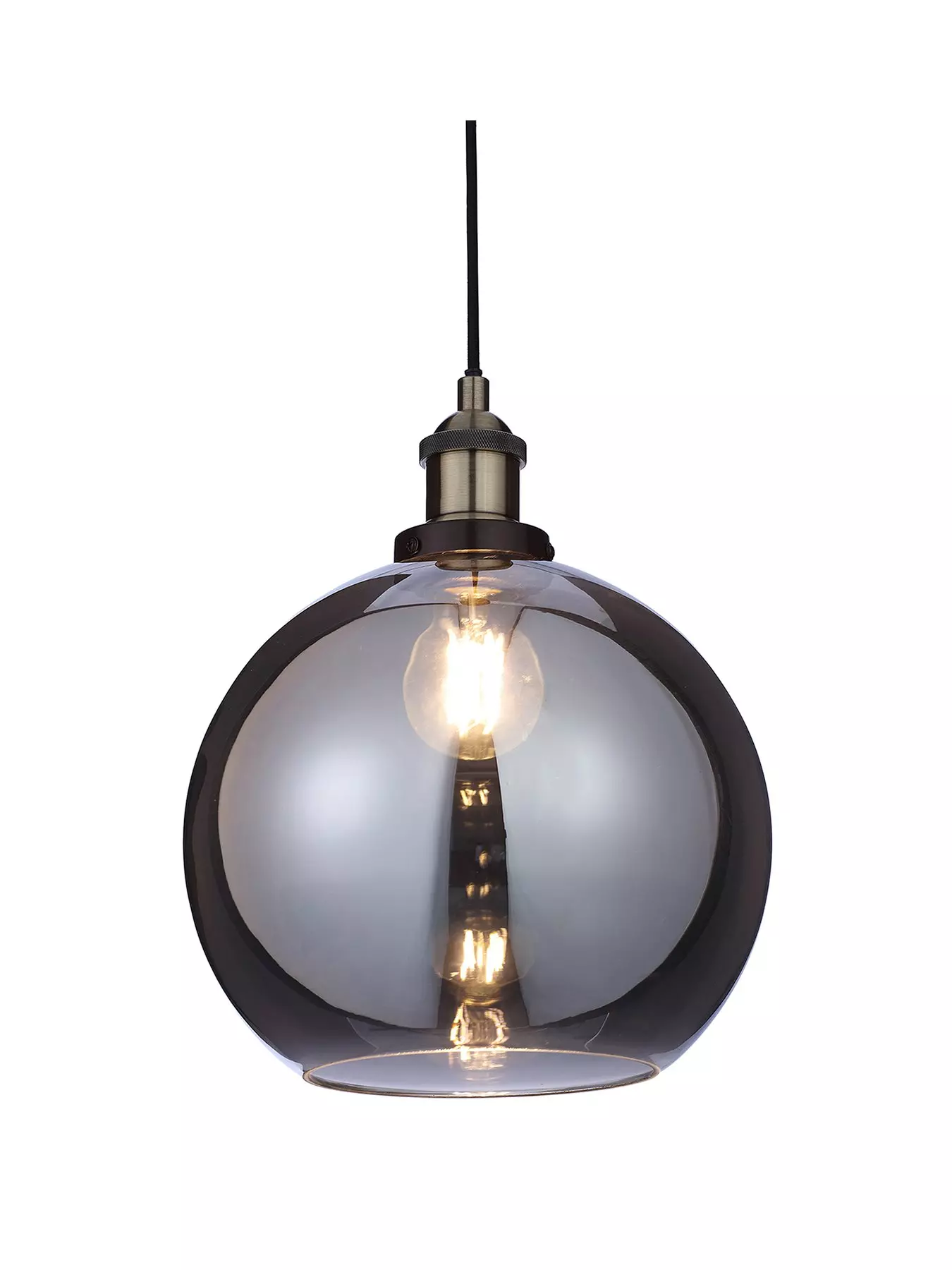 Combining the sought-after looks of industrial influences with a sense of contemporary beauty, this ceiling light is a unique way to refresh your space.Extending from the black metal plate is a single light which comes complete with a round glass shade. A mirrored finish captures the attention in an instant, while the smoky finish of the glass helps to soften the light from your bulb to a gentle glow. Adjustable from 60 cm to a maximum drop of 100 cm, brushed metal detailing completes the look and ensures it’s just as effective in your lounge or dining room as it is in the bedroom.