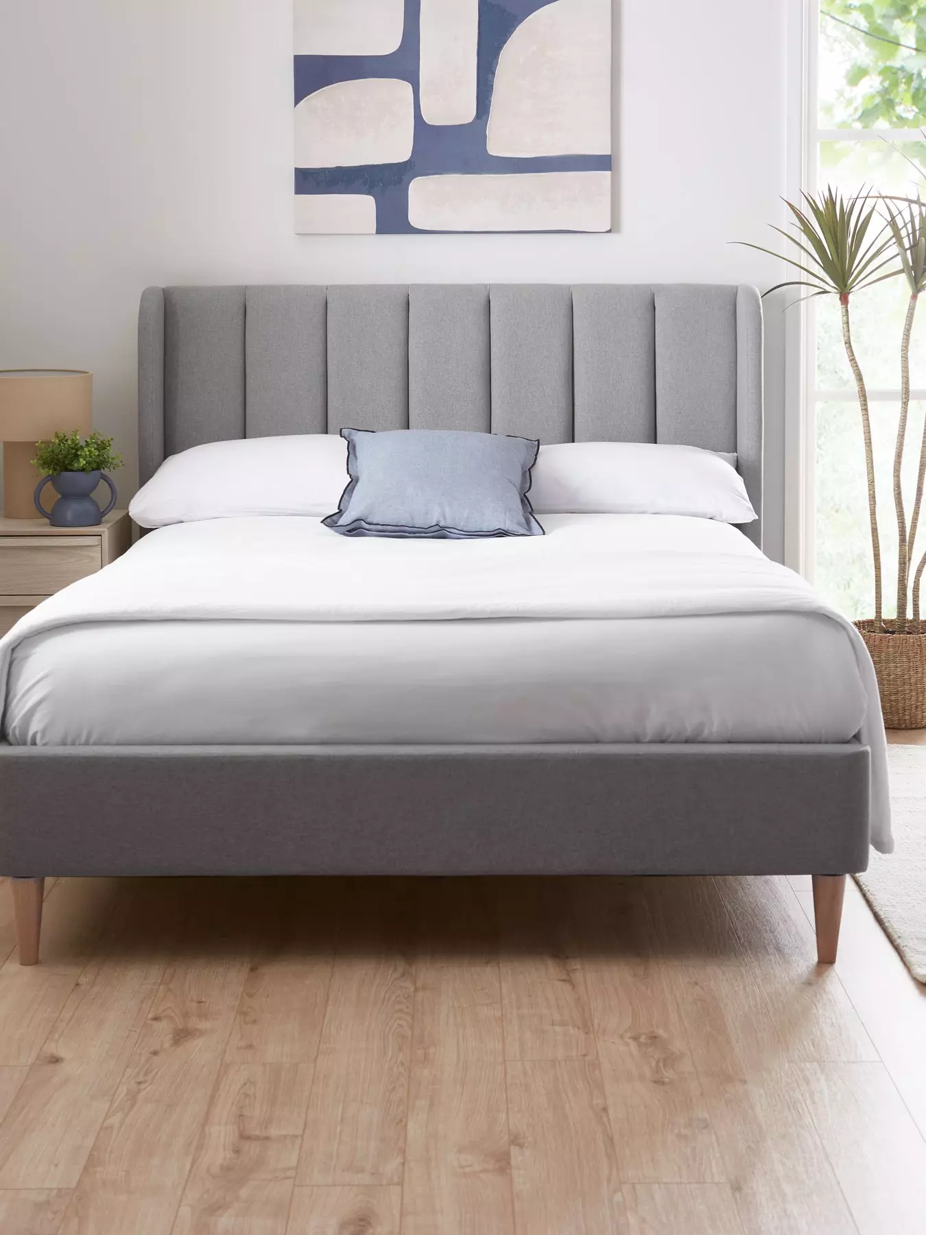 Wrapped in a richly textured fabric, this Nook bed frame from Very Home has a contemporary grey shade you can match with a wide selection of bedding patterns and colours (check out our ranges for some style inspiration!).Its crowning glory is the soft padded headboard that flaunts fashionable vertical lines and a modern take on winged edges - perfect for propping yourself up when reading a book or browsing your phone.