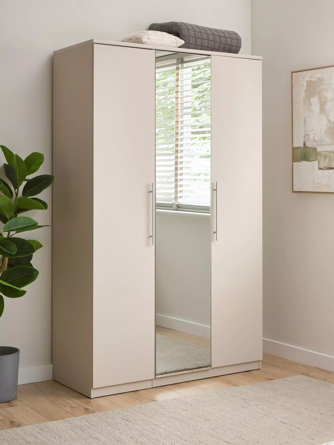 The Very Collection Prague 3 Door Mirrored Wardrobe in Oatmeal