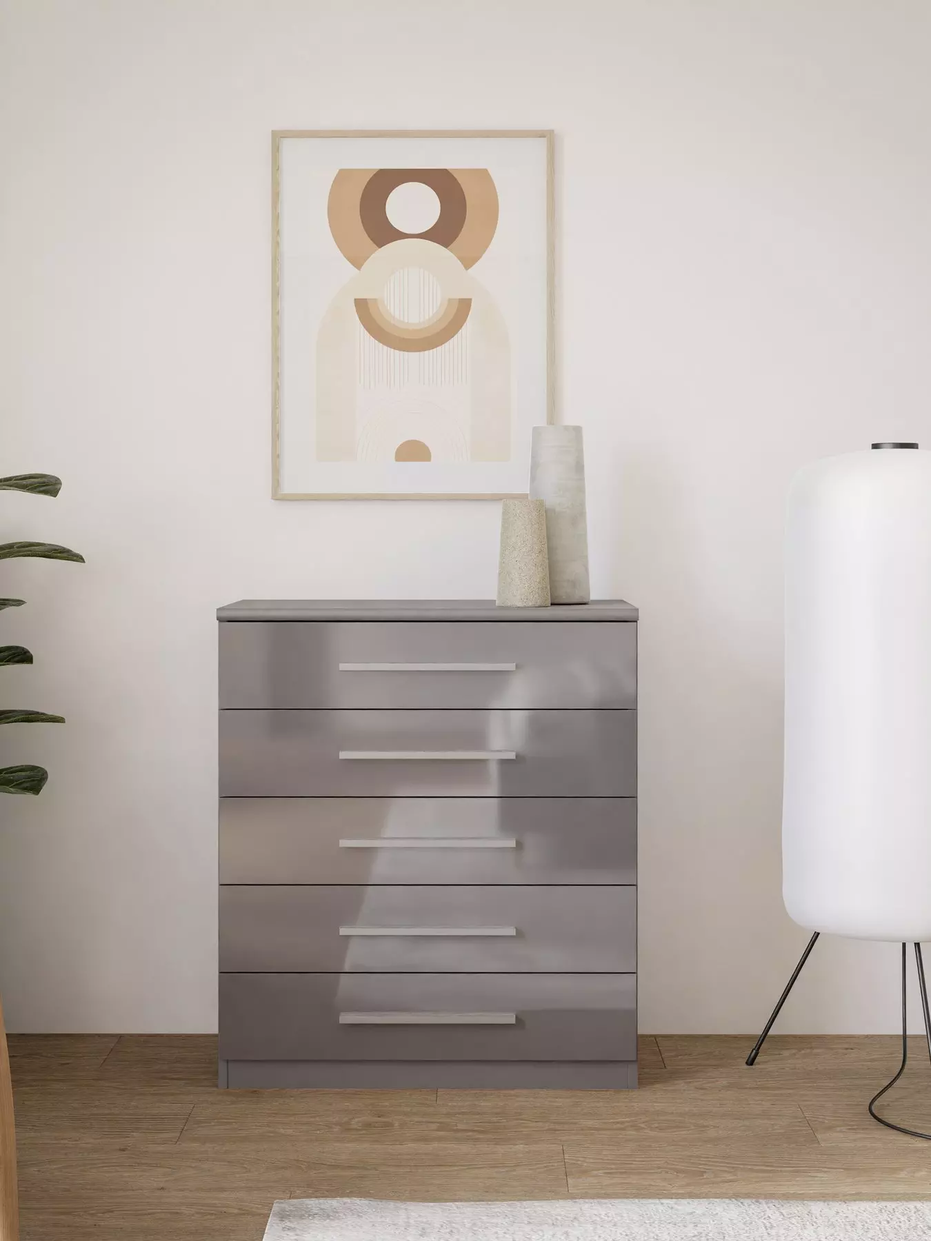 The Very CollectionPrague Gloss 5 Drawer Chest - Grey