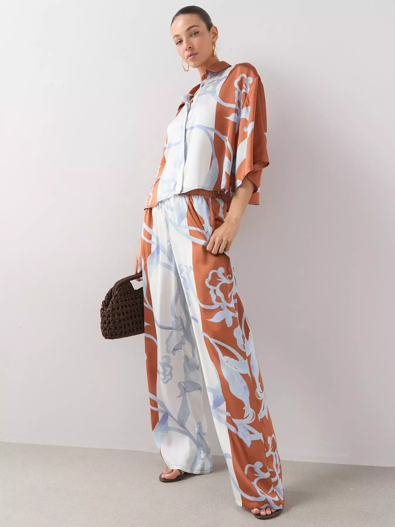 - Printed Elasticated Satin Wide Leg Co-Ord Trousers Printed by The Very Collection