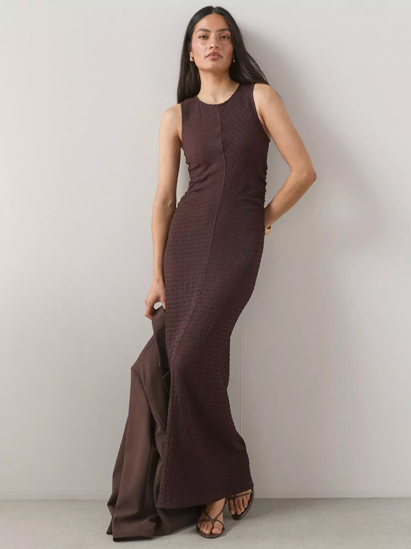The Very CollectionRuched Side Textured Maxi Dress - Brown