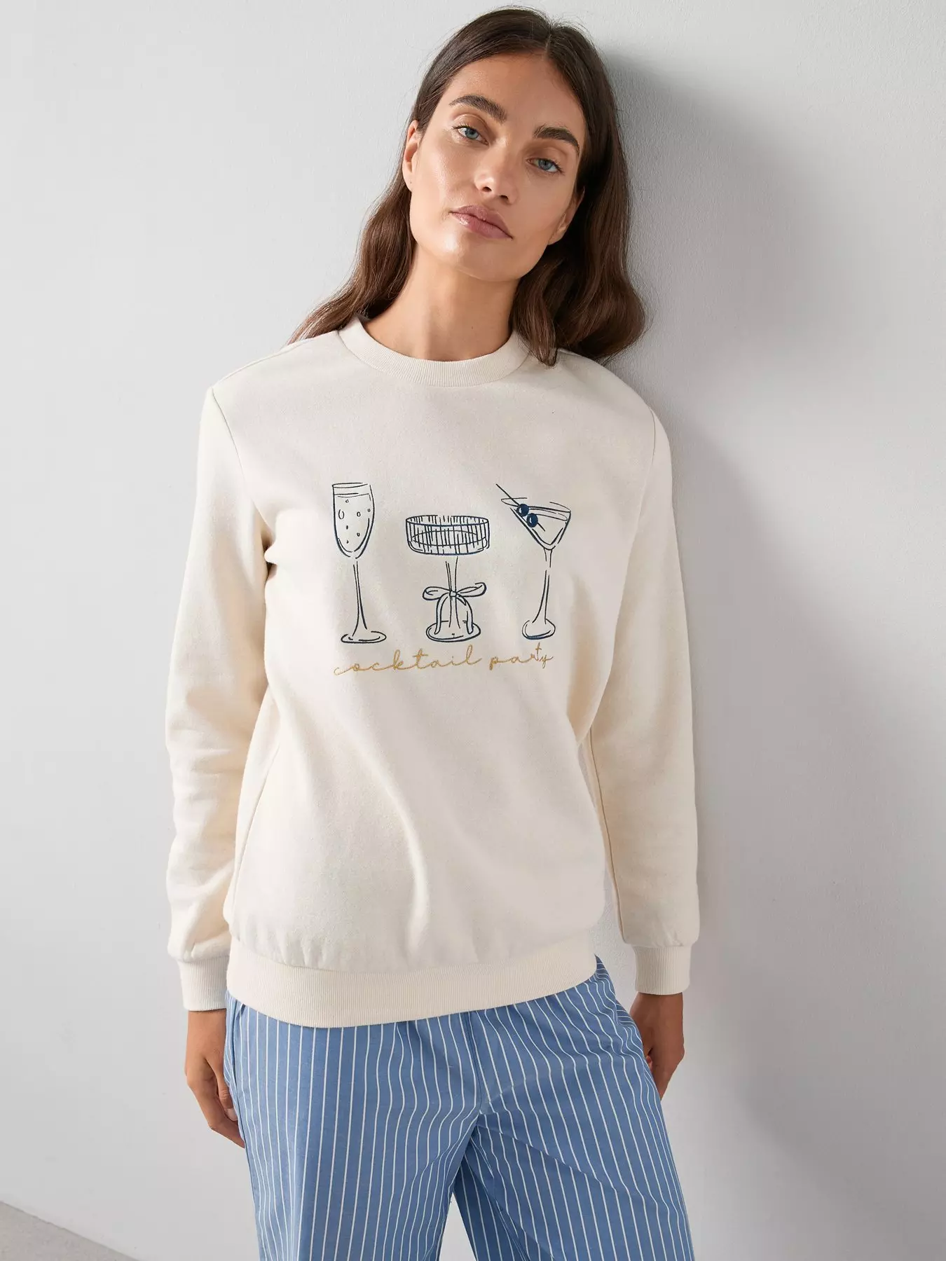 The Very Collection Slogan Sweat And Woven Stripe Bottom Pj Set