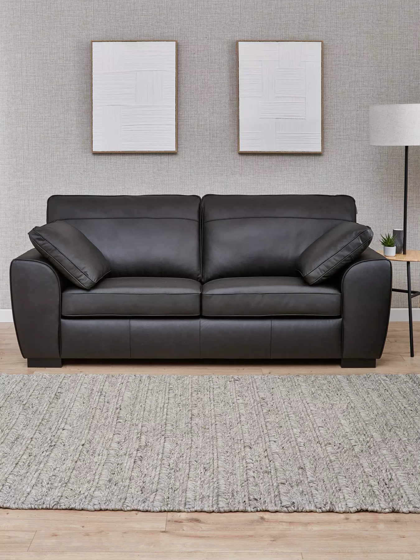 Modern and stylish, this Sona sofa is crafted from 100% premium leather which has an unmistakable feel of luxury. The classic black hue matches a wide range of decors and will look great with all kinds of accent cushions.