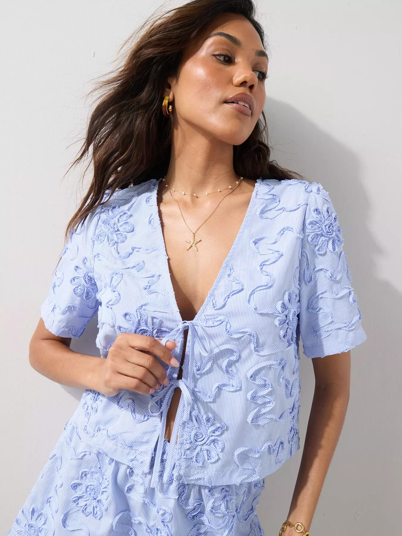 The Very Collection Stripe Floral Short Sleeve Shirt - Blue