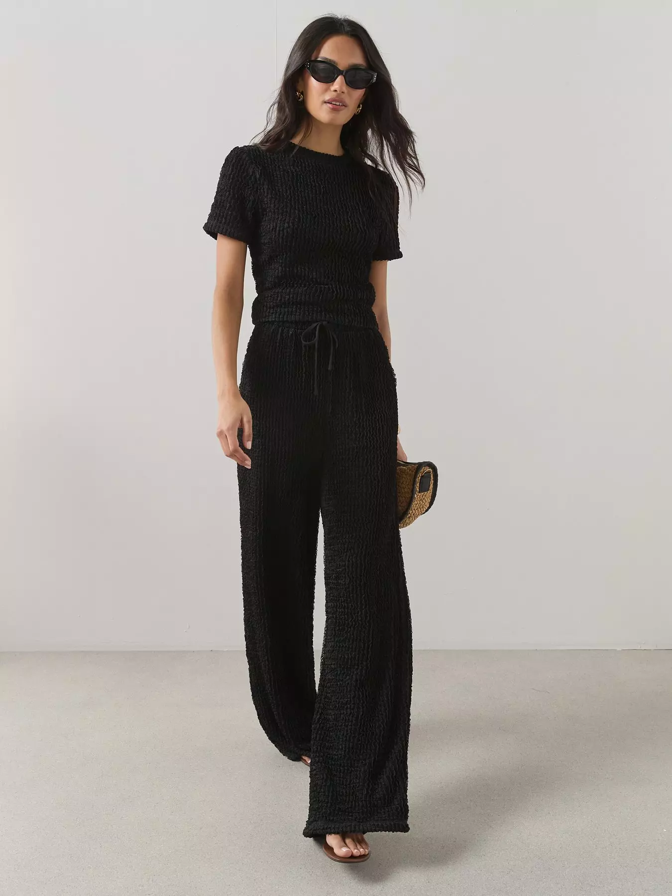 The Very CollectionTextured Wide Leg Co-Ord Trouser - Black