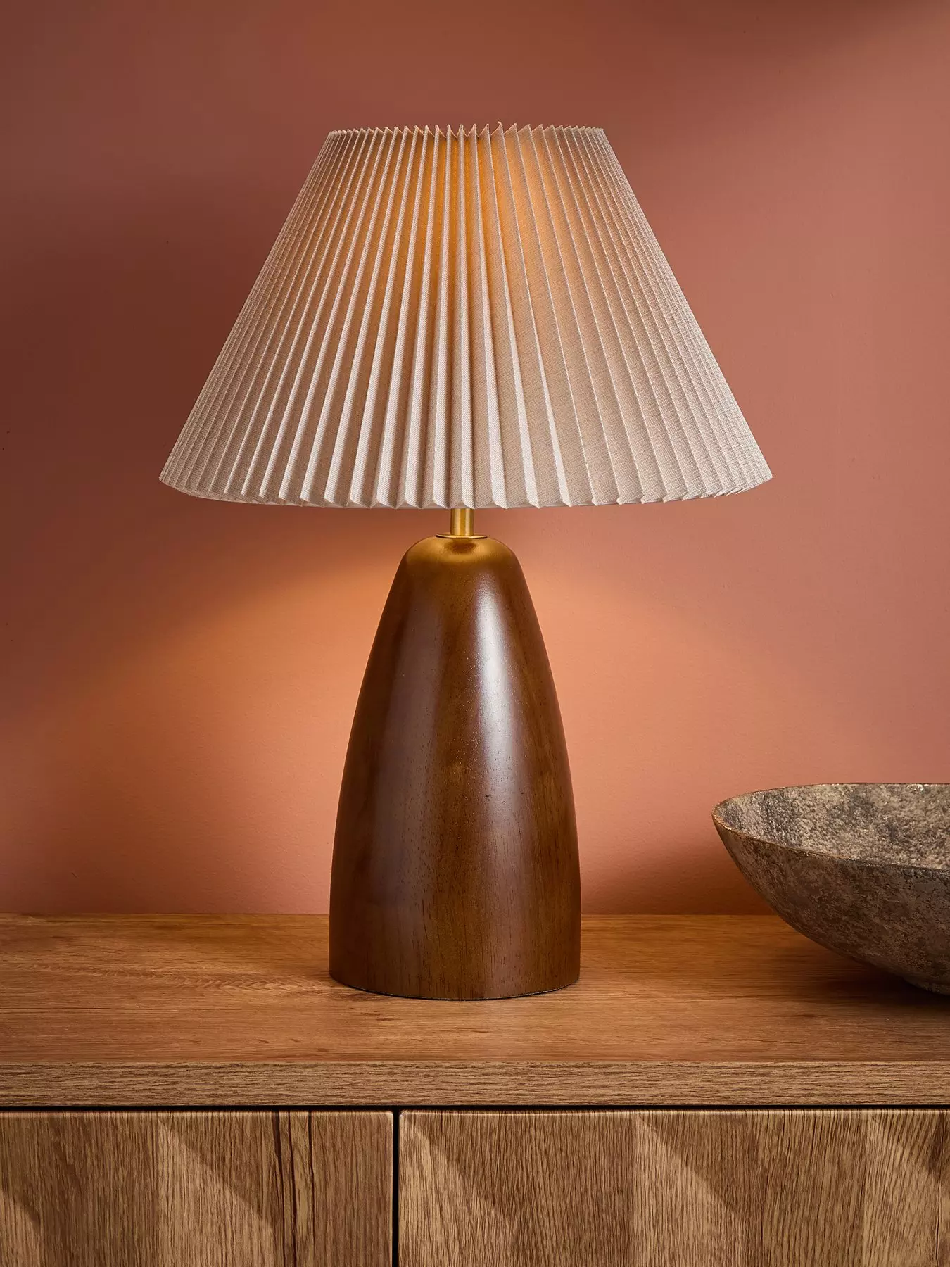 The Very CollectionWalnut Table Lamp With Pleated Shade
