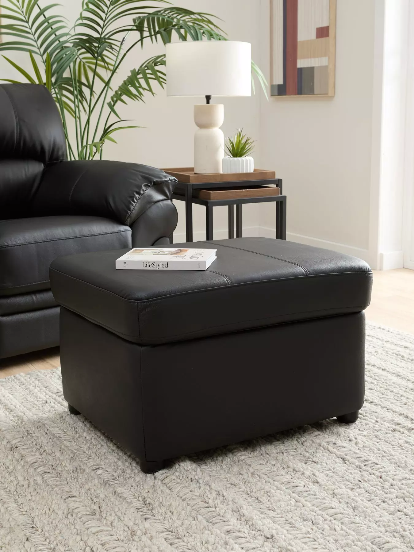 Part of the Portland collection, this ottoman creates a comfy footstool or even an extra seating space in your home. It's upholstered in a 100% leather and the lid can be removed to find a handy storage area for everything from clutter to kids toys.