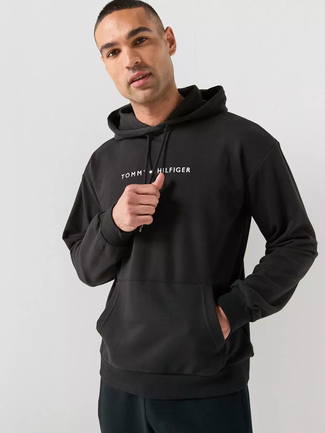 Tommy HilfigerLinear Logo Loungewear Overhead Hoodie- Black