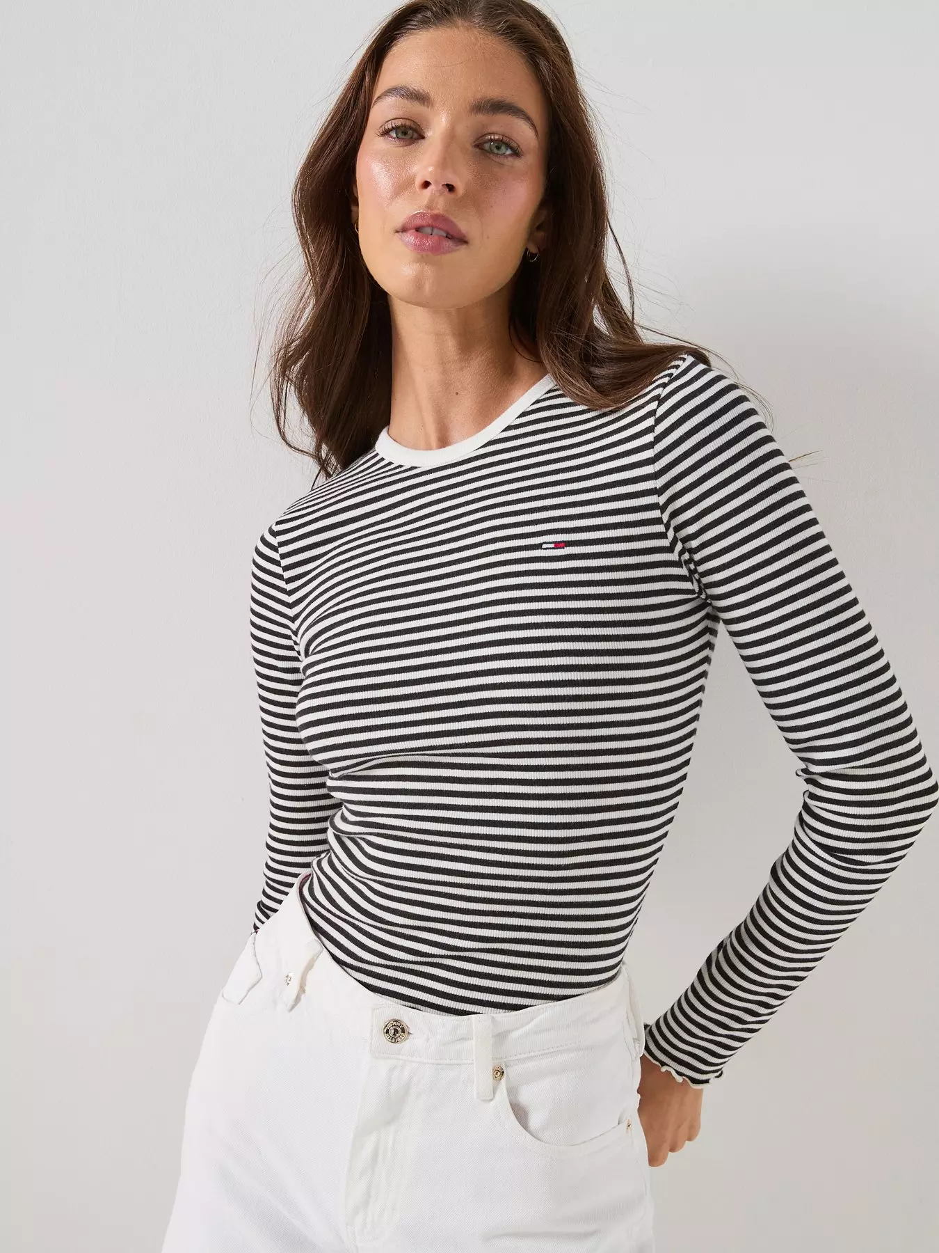 E.A.N: 8 7 2 1 3 3 7 1 7 4 1 8 0Tommy Jeans Long Sleeve Lettuce Edge Rib Stripe Top