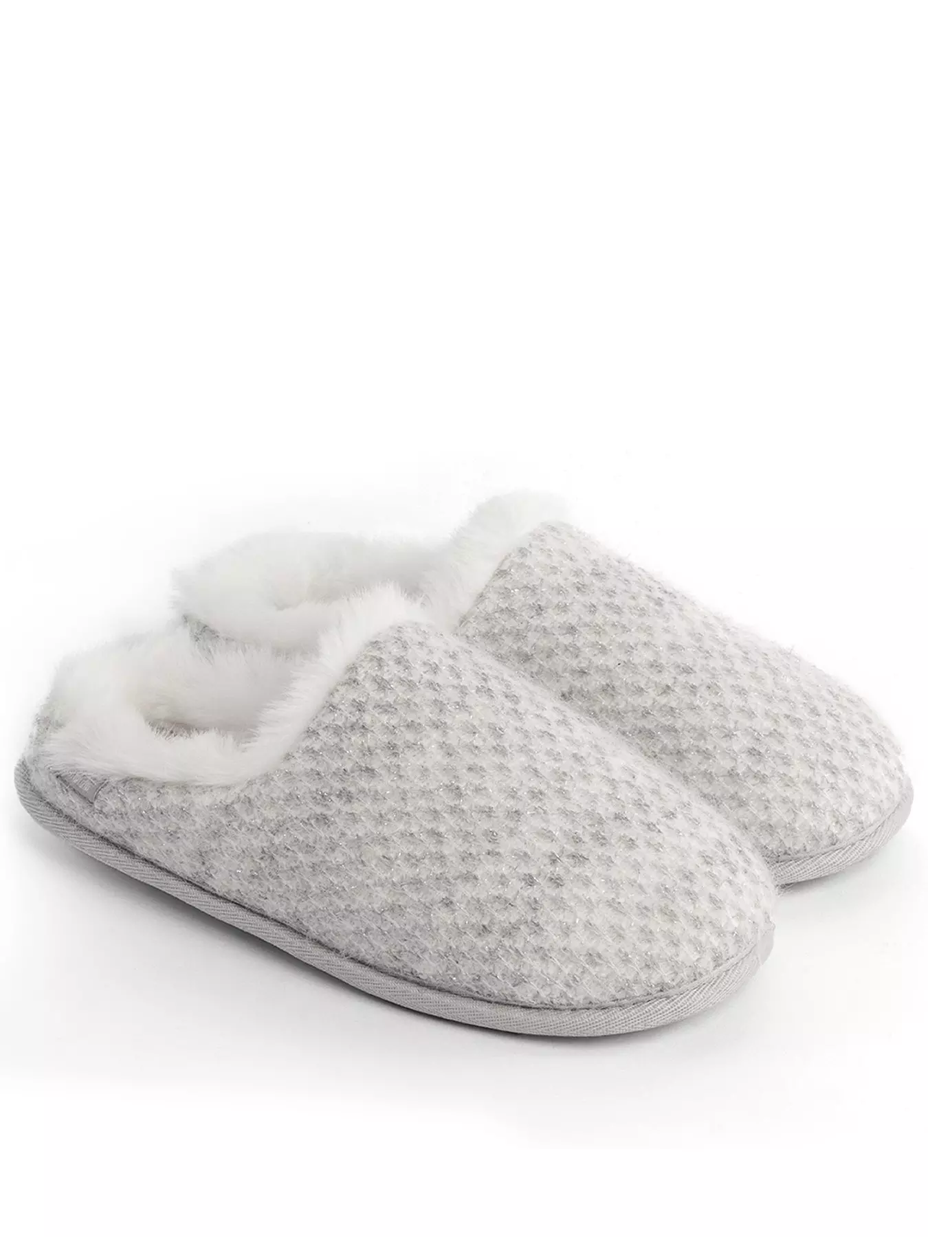 Totes IsotonerLadies Sparkle Knit Swept Back Mule Slippers - Light Grey