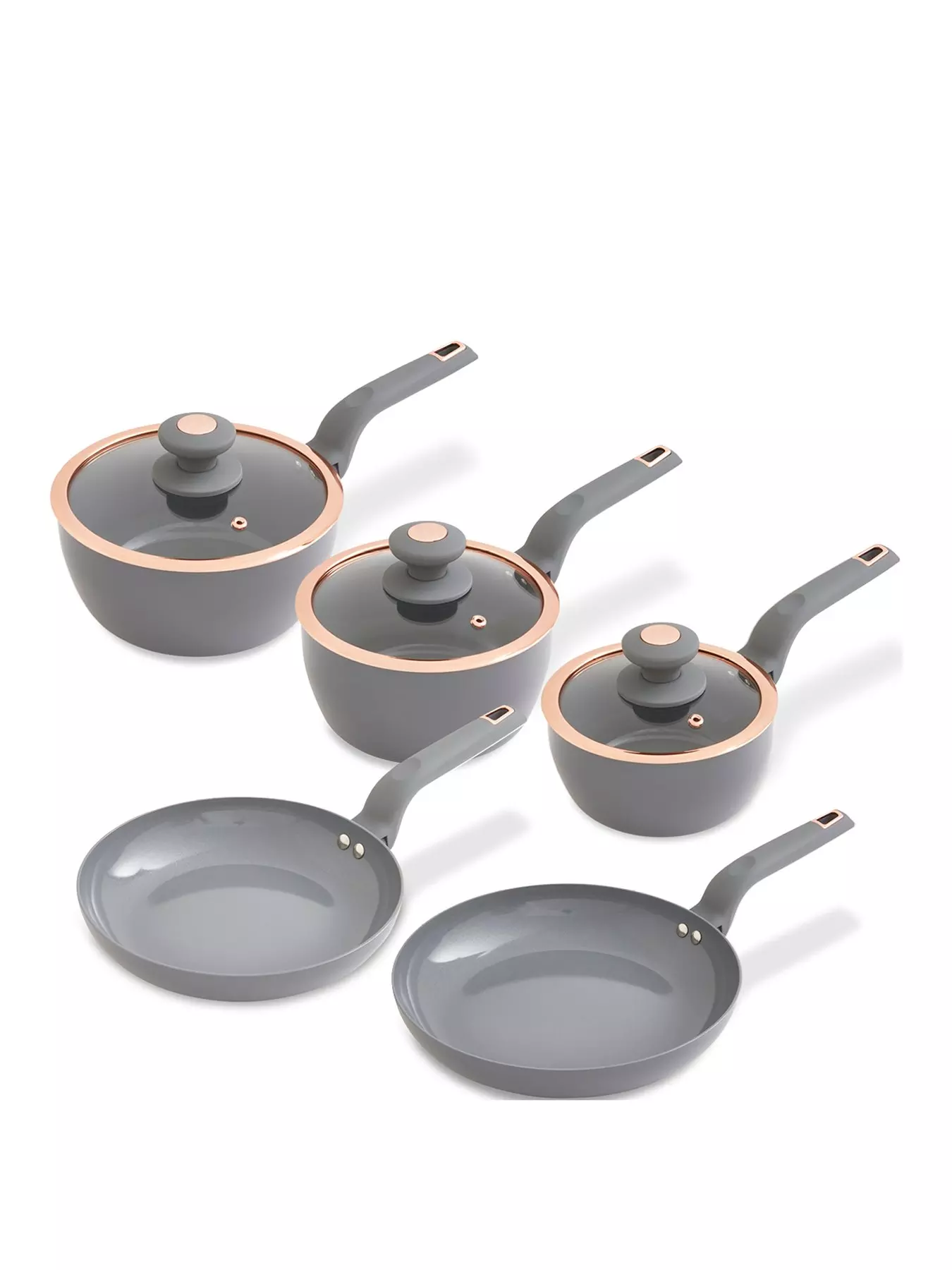 - SOFTTEX HANDLES: Each pan features softtex handles in an elegant grey and rose gold finish, for maximum comfort and style when cooking