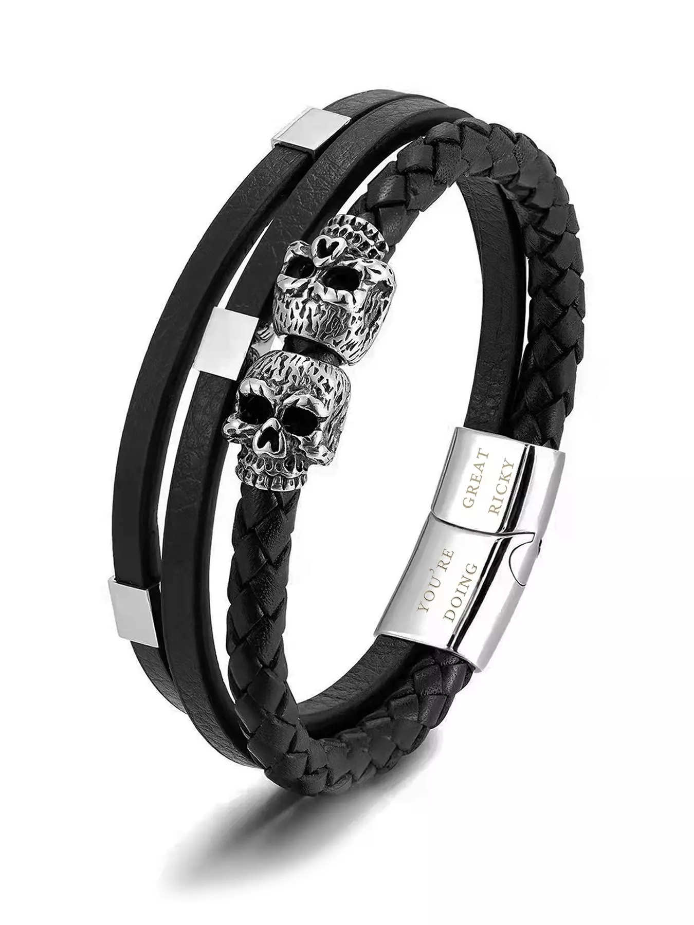 E.A.N: 5 0 5 5 9 0 1 5 0 0 1 9 2Treat Republic Personalised Mens Skulls Leather Bracelet