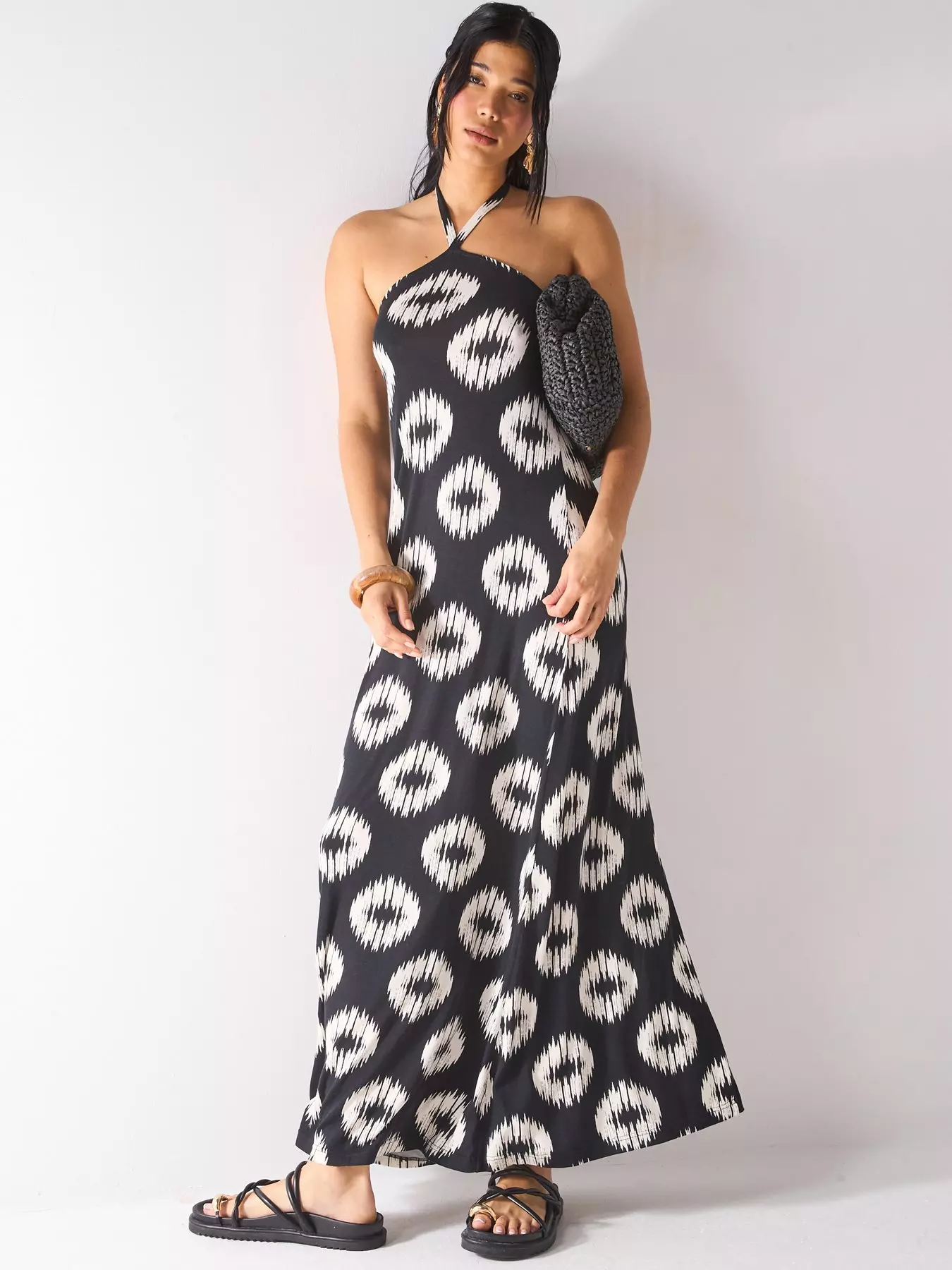 V by Very Halter Neck Mono Printed Maxi Beach Dress