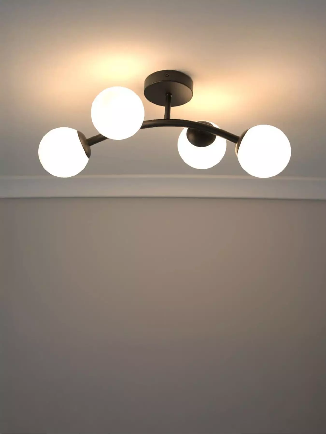 The Jas four arm flush ceiling light in black is the perfect choice for any modern home, with an elegant design and timeless opal globe shades.- Depth: 480 MM