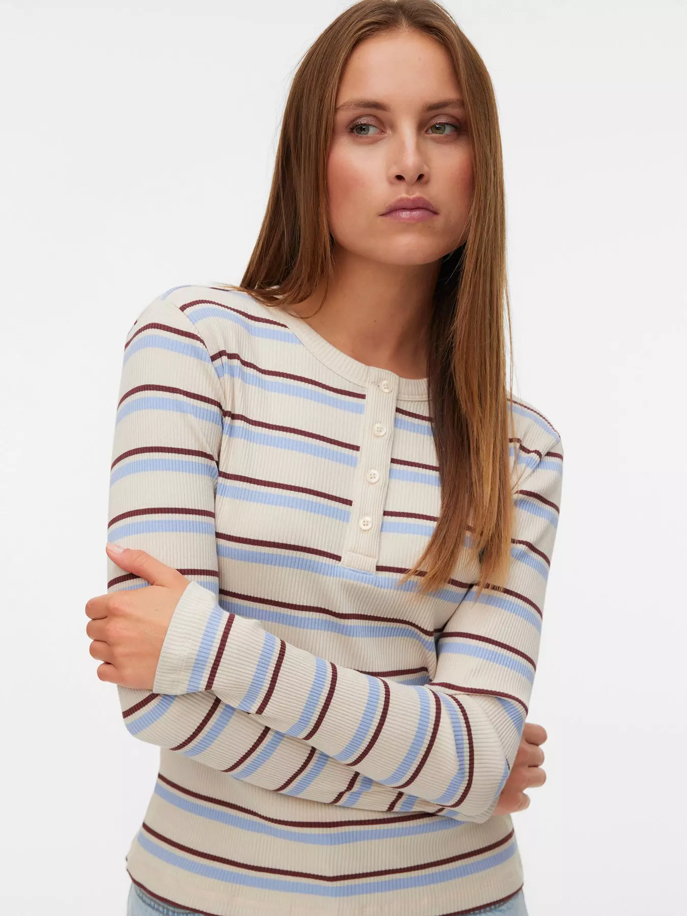 Vero ModaVmkatie Long Sleeve O-Neck Top - Brown/Blue