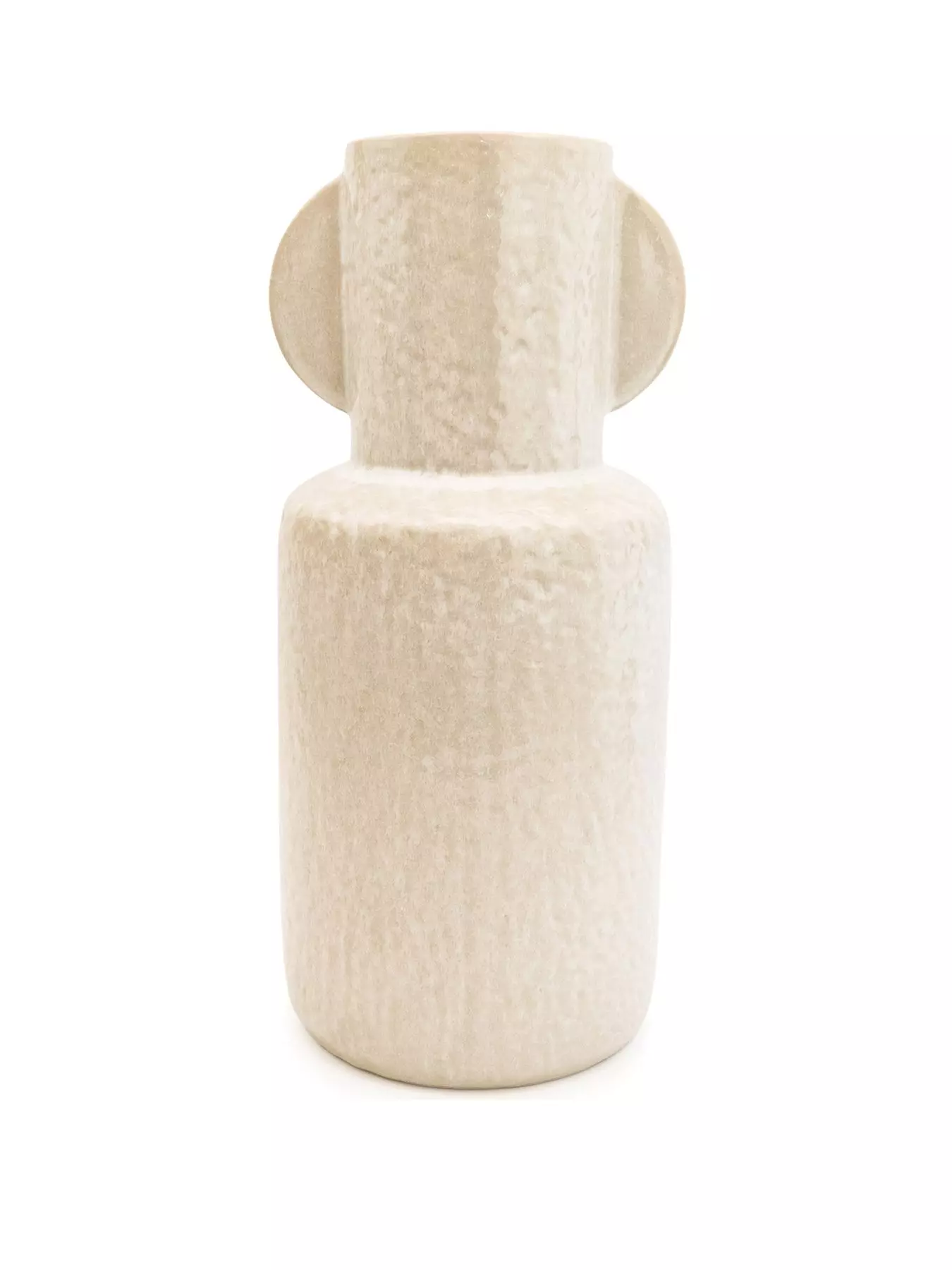 The textured finish of this cream vase from Very Home makes it a wonderful way to add texture to your interiors.Standing 44 cm tall in a classy cream colourway, it takes on a rustic appearance with its all-over dimpled exterior. Two small handles, one to either side of the neck, add detail to the appearance and ensure it looks just as good when filled with fresh blooms as it does left empty on a sideboard or shelf.