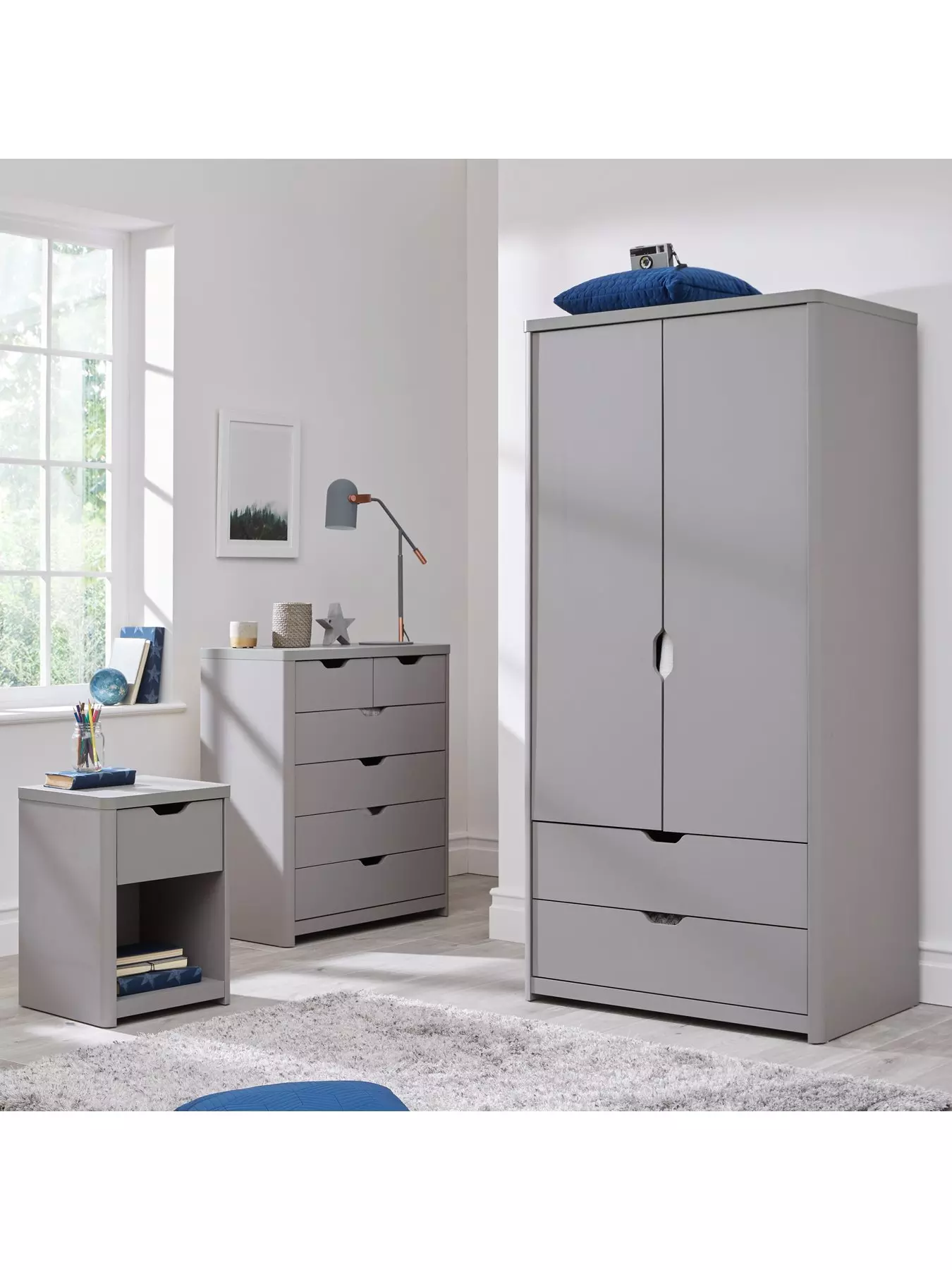 Perfect for furnishing a kids bedroom in one easy purchase, this 3 piece Aspen set from Very Home is features a grown-up grey oak-effect with a realistic grained finish.The set contains a 2 door wardrobe that contains a hanging rail and features a pair of drawers for added clothes storage.