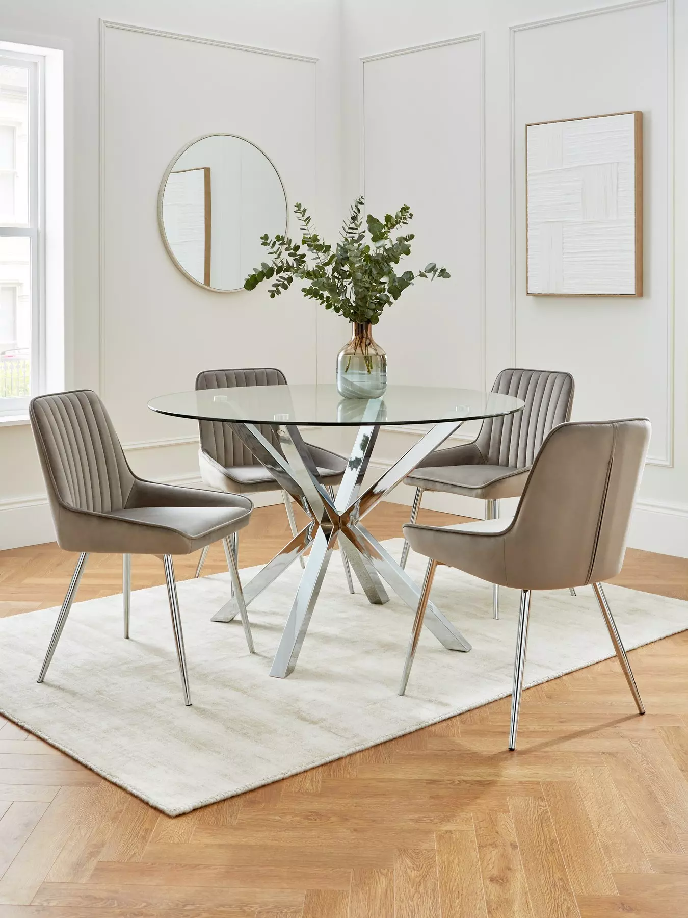 Very Home Chopstick 120 cm Round Dining Table plus 4 Alisha Chairs in Chrome/Grey