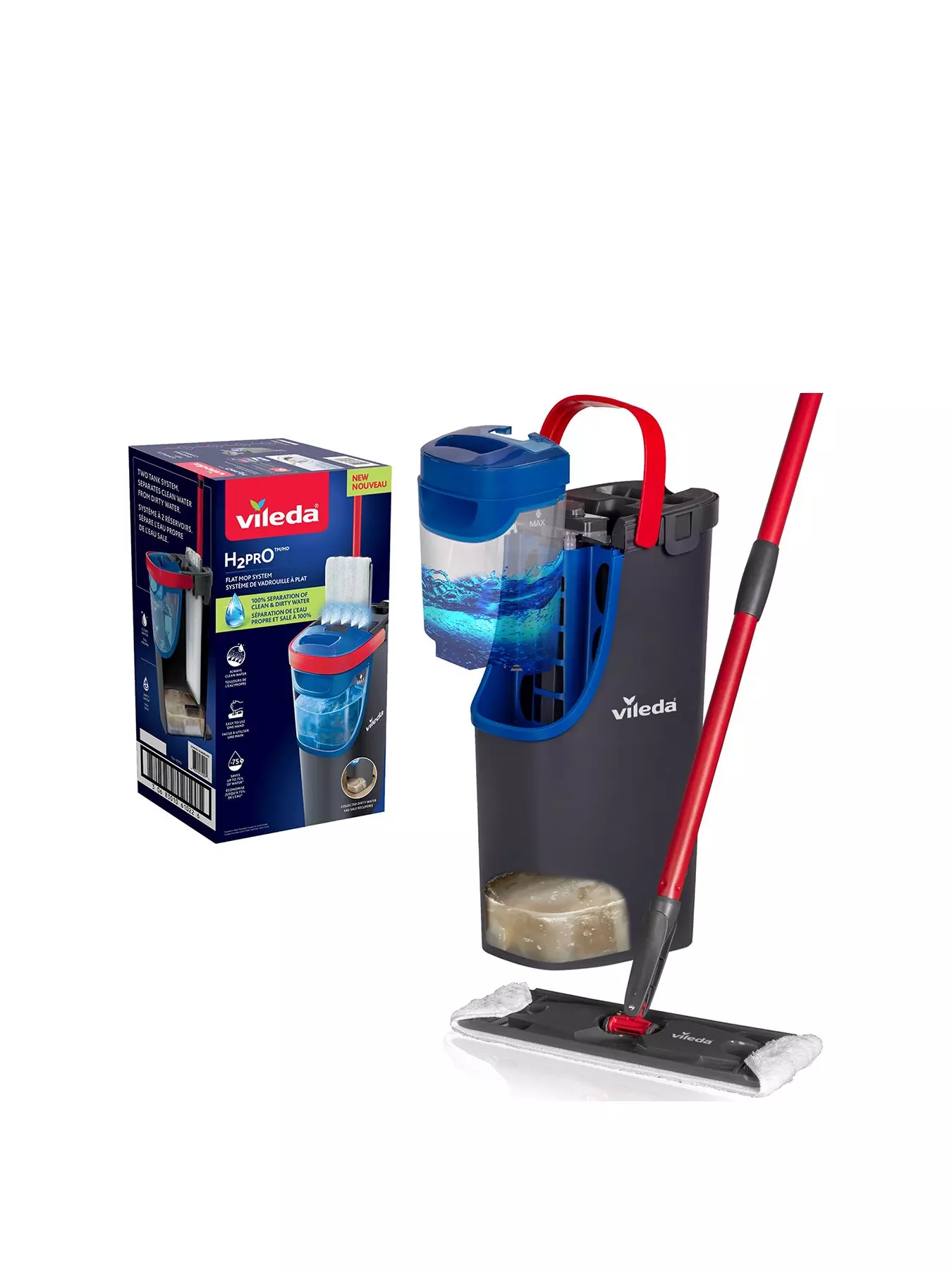 Experience the revolutionary H2PrO flat mop system, designed to optimise your cleaning with 100% separation of clean and dirty water, water-saving technology, and advanced microfibre technology for pristine floors. - Revolutionary two-tank system for 100% separation of clean and dirty water - Powerful water jets allow you to clean with clean water! - Ergonomic design makes mopping easy - wring with one-hand and easily manouvre into corners and hard to reach spots - Save water! The H2PrO flat mop system uses only 1.2 litres of water to clean up to 60m²* * Internal testing - High-quality microfibre pad effectively removes stubborn dirt and ensures a streak-free finish - The mop pad is easy to attach/detach and is machine washable at up to 60°C - Safe for use on all hard floors - Compact design easily fits in tight storage spaces- Depth: 16 CM