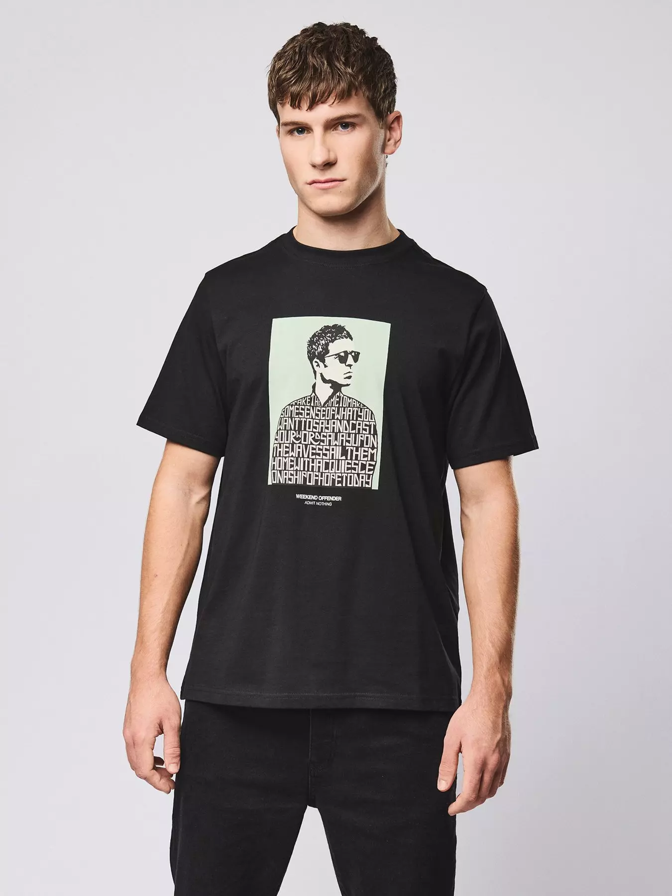 A graphic homage to one of British music's most iconic voices. The silhouette is built entirely from lyrics that defined a generation.- Material Content: 100% COTTON