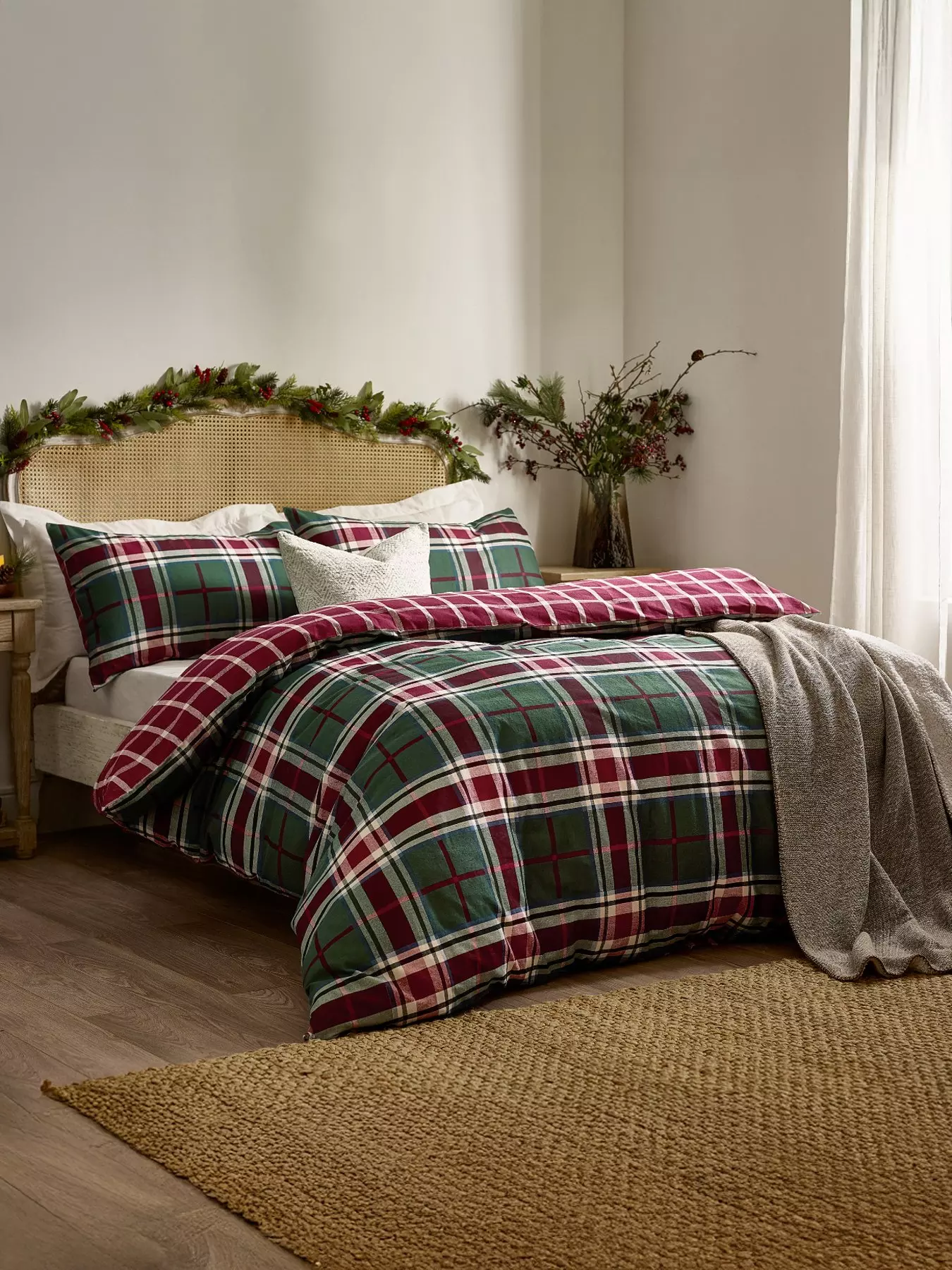 WylderBraemar Check King Size Duvet Set Berry/pine