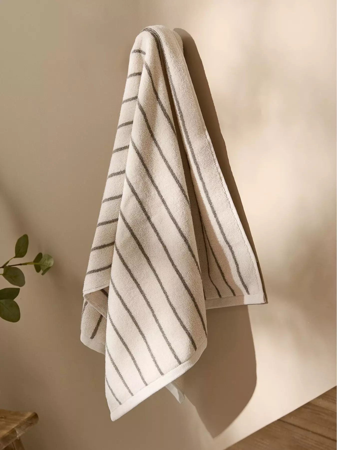 - A classic striped towel in a range of earthy tones.