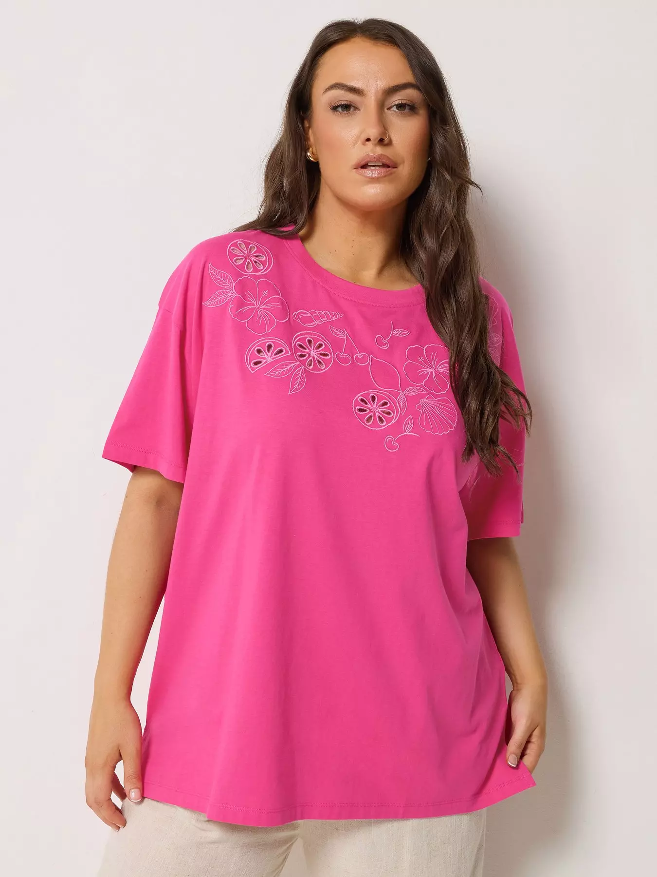 YoursCurve Applique Fruit Print T-Shirt - Pink