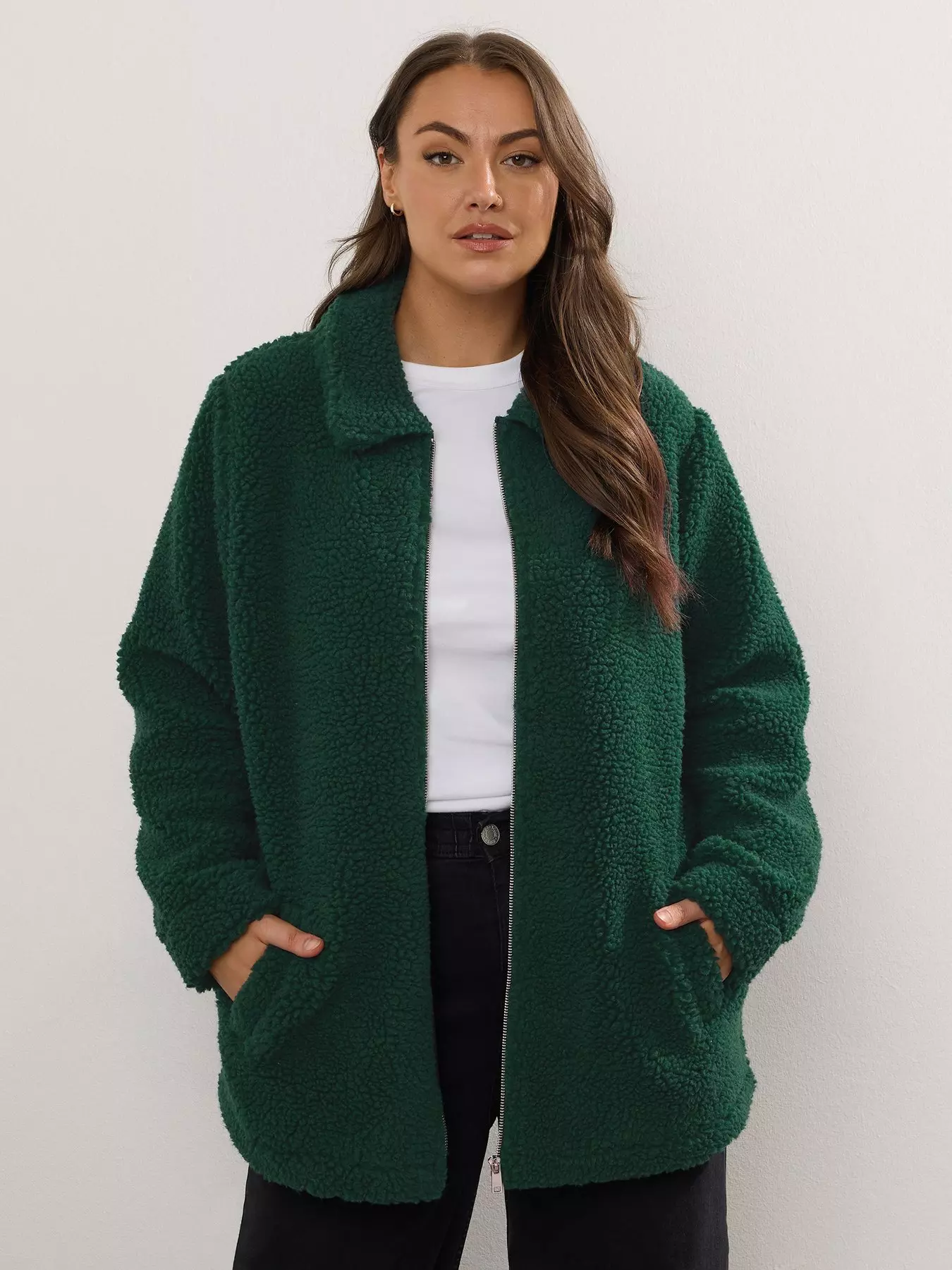 YoursCurve Borg Heavy Zip Through Fleece - Green