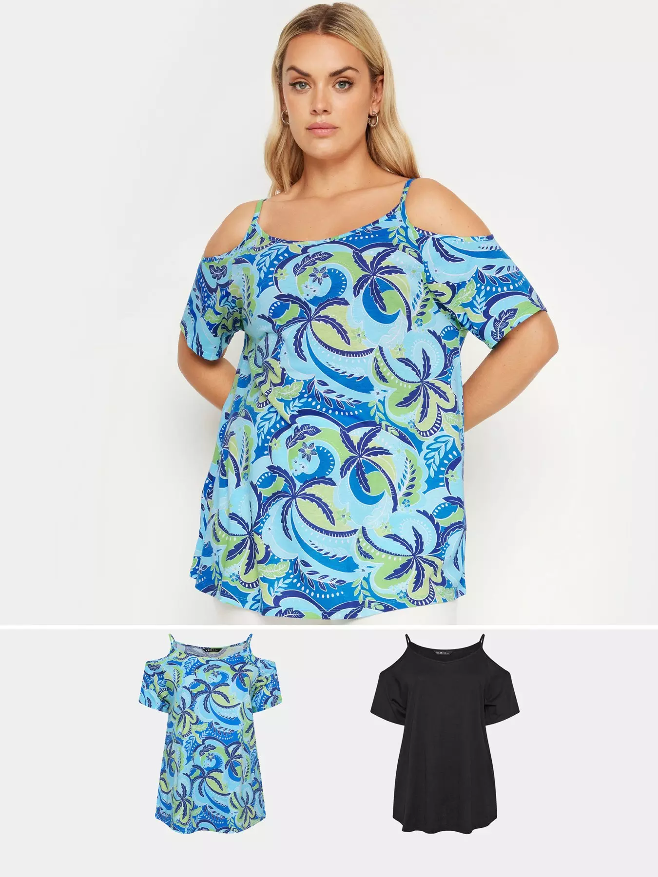 YoursCurve Cold Shoulder 2 Pack Tops - Multi