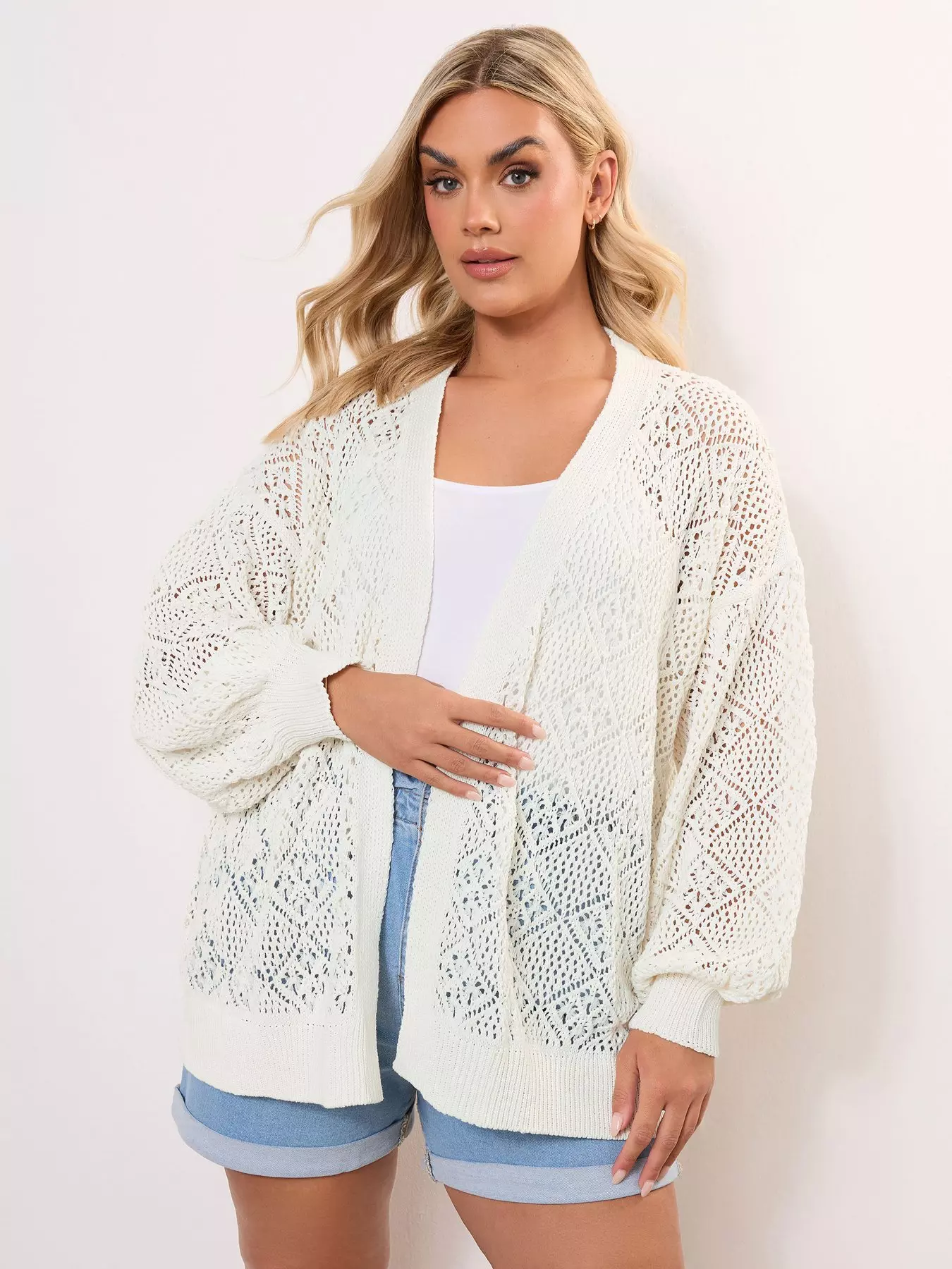 YoursCurve Diamond Stitch Balloon Cardigan - Ivory White