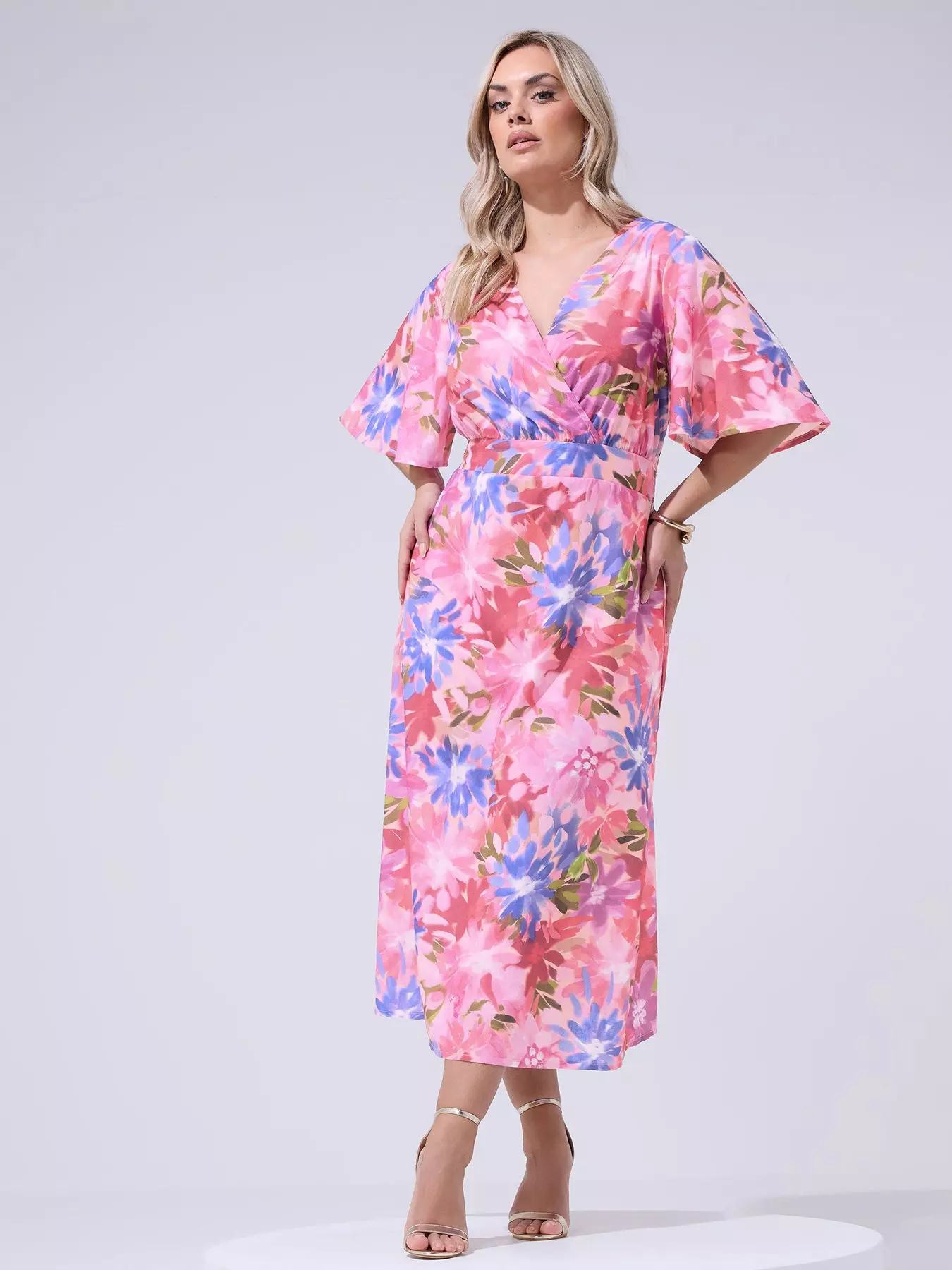 Yours Curve Floral Linen Look Wrap Dress