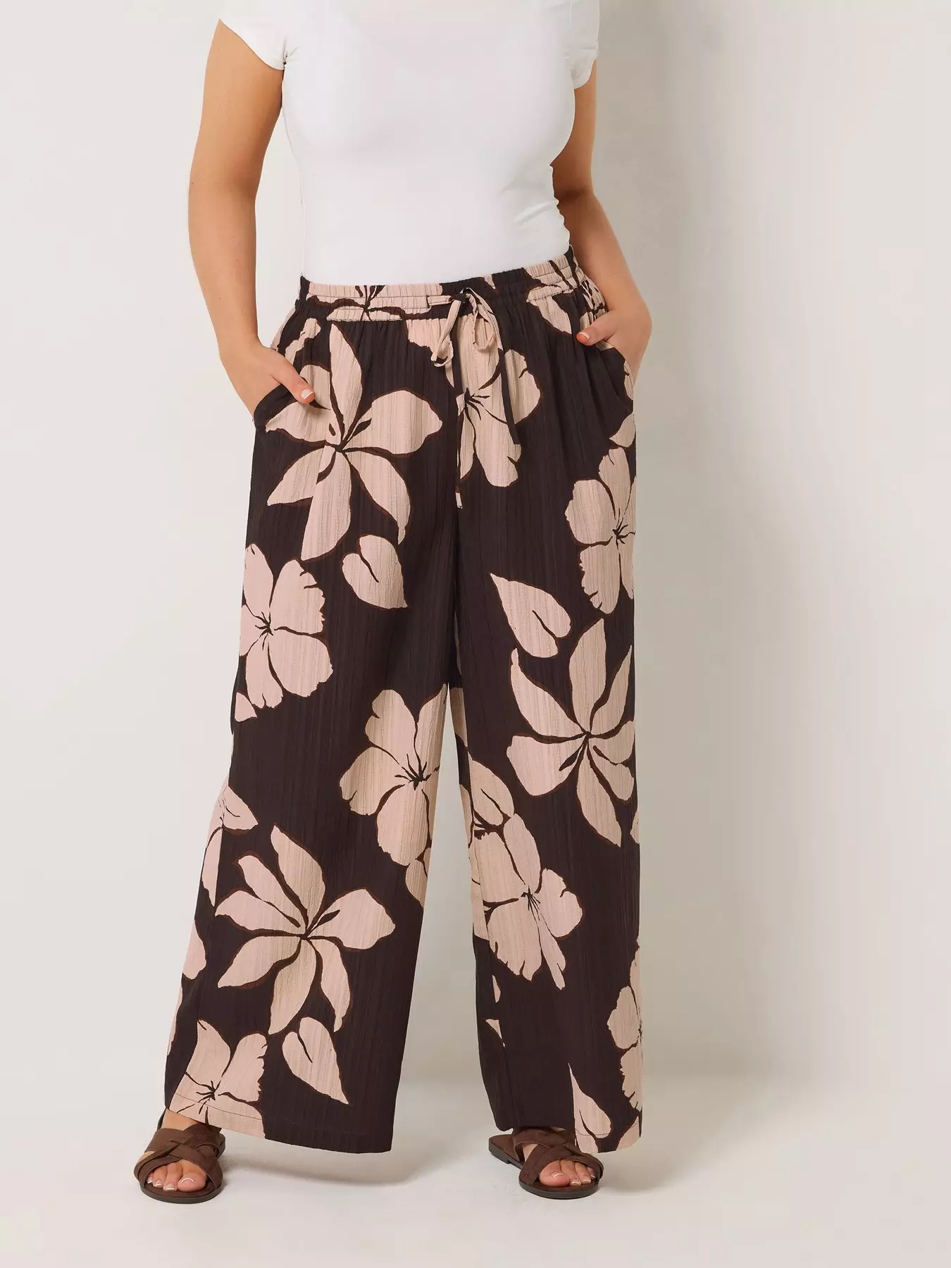YoursCurve Floral Print Wide Leg Trouser