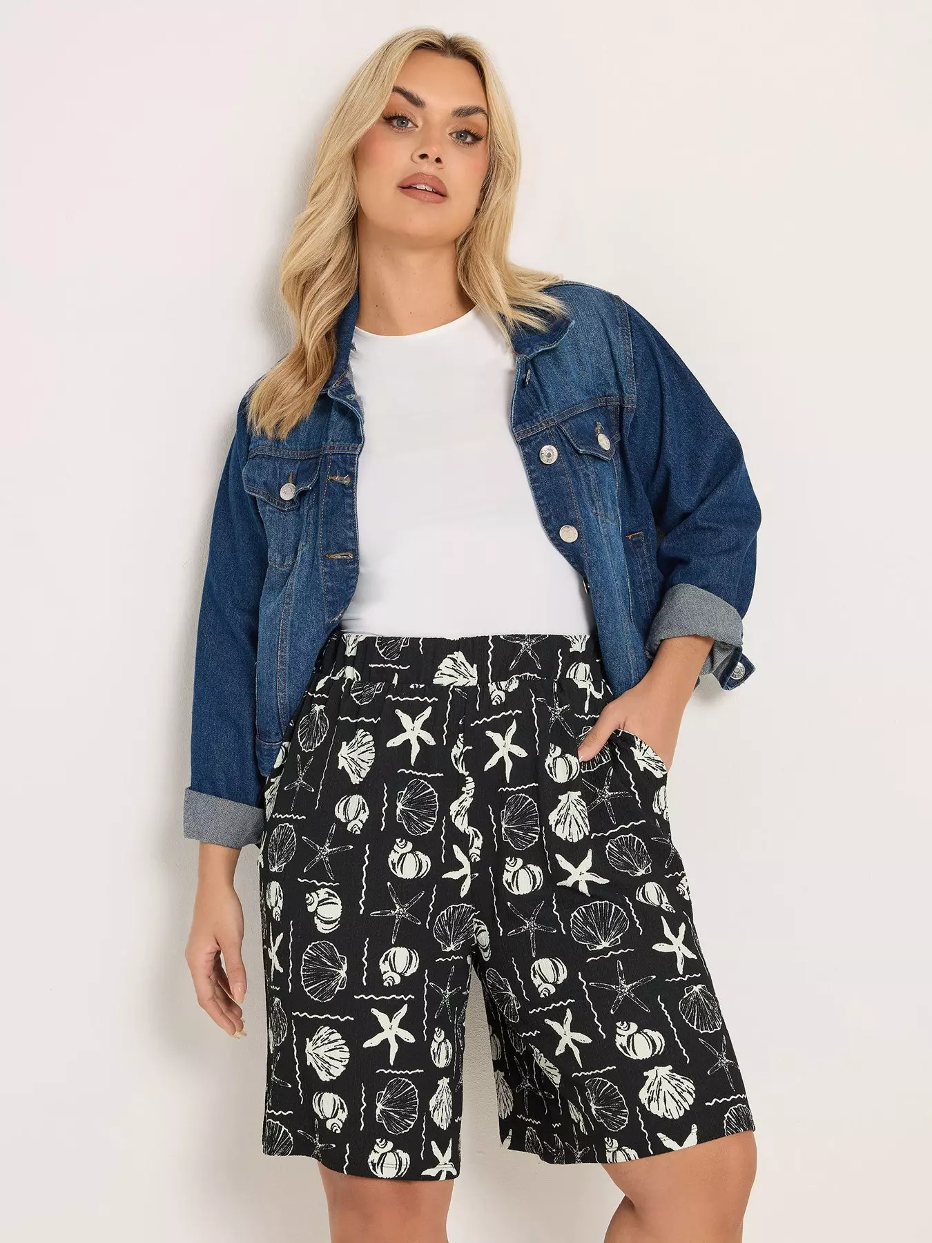 YoursCurve Jersey Crinkle Shell Print Shorts - Black
