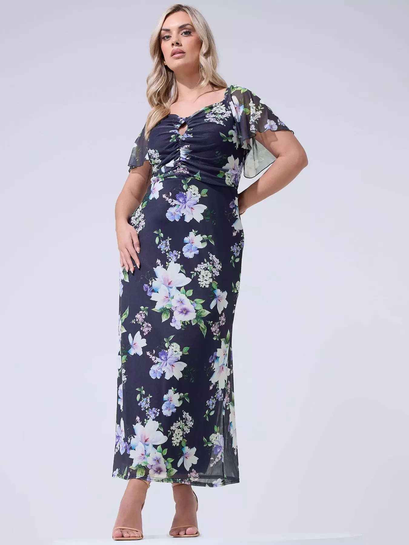 - Curve Keyhole Mesh Maxi Dress by Yours