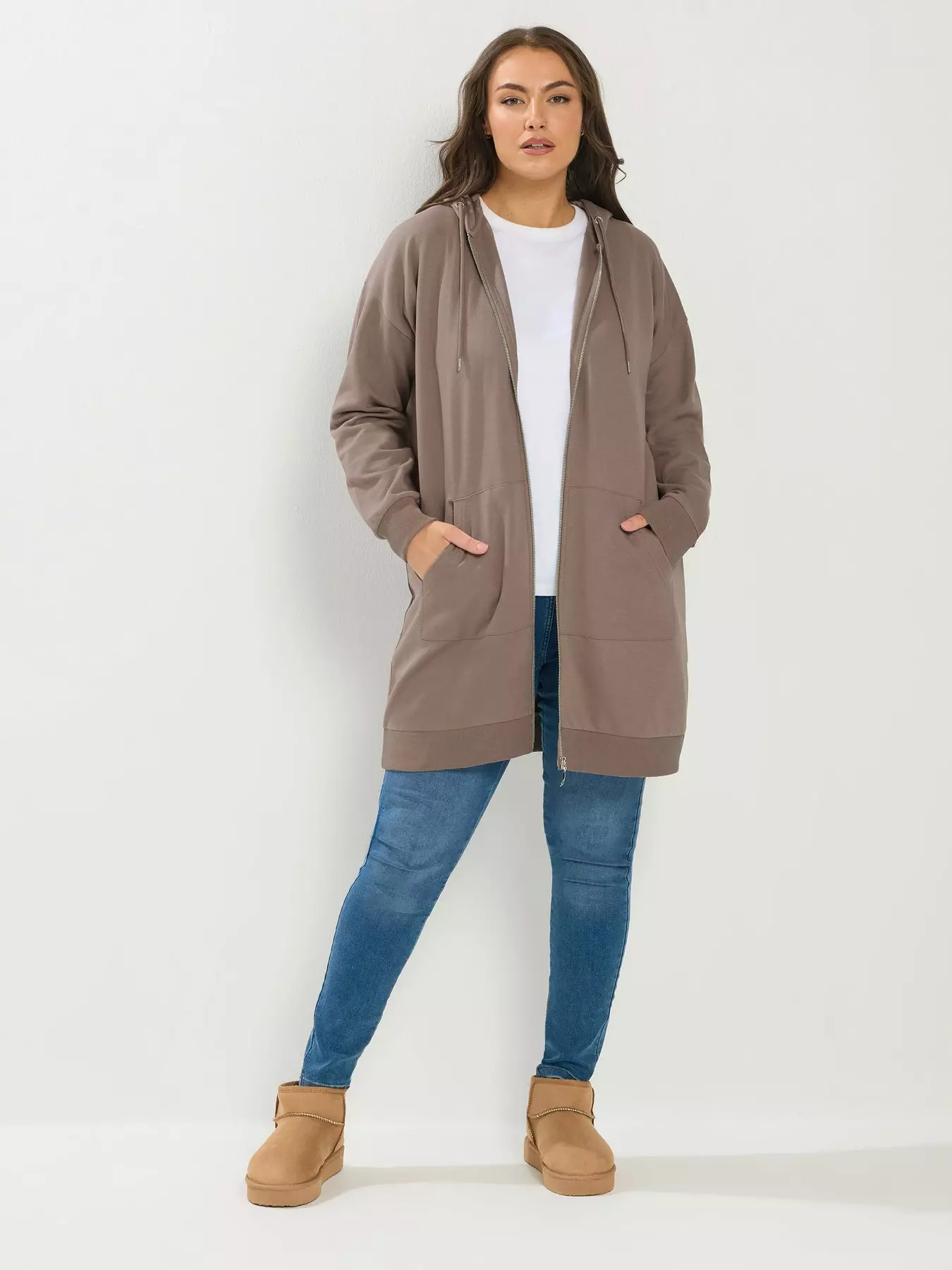 Zip fastening, Drawstring hood, Longline style, Two functional front pockets, Made from a comfortable cotton blend fabric, 60 polyester, 40 cotton, Length from approx: 87cm/34.2, Machine washable- Material Content: 60% Cotton 40% Polyester