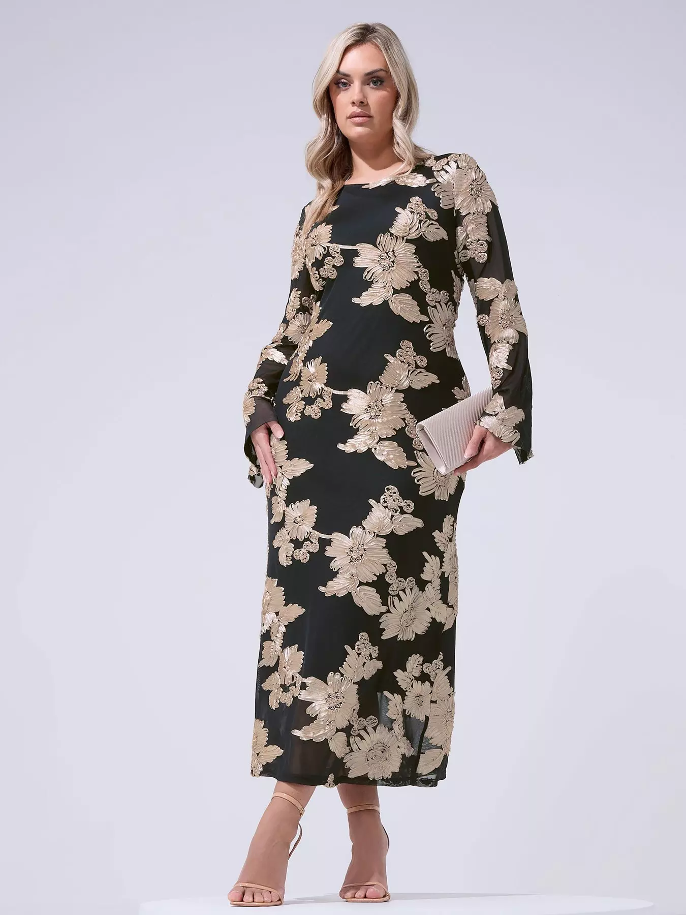Yours Curve Mesh Applique Long Sleeve Maxi Dress