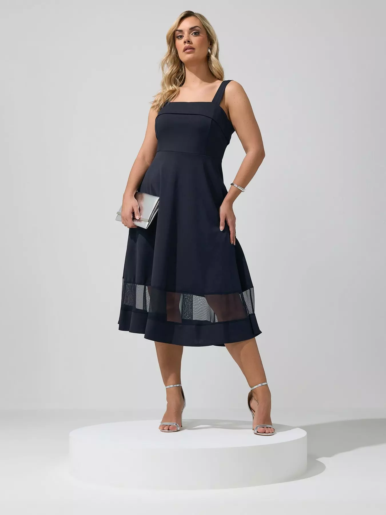Yours Curve Mesh Insert Cold Shoulder Skater Dress