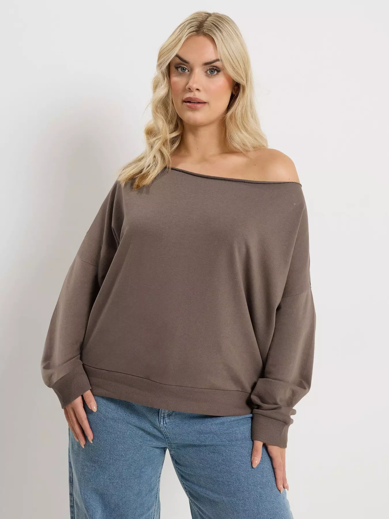 YoursCurve Off Shoulder Sweatshirt - Brown