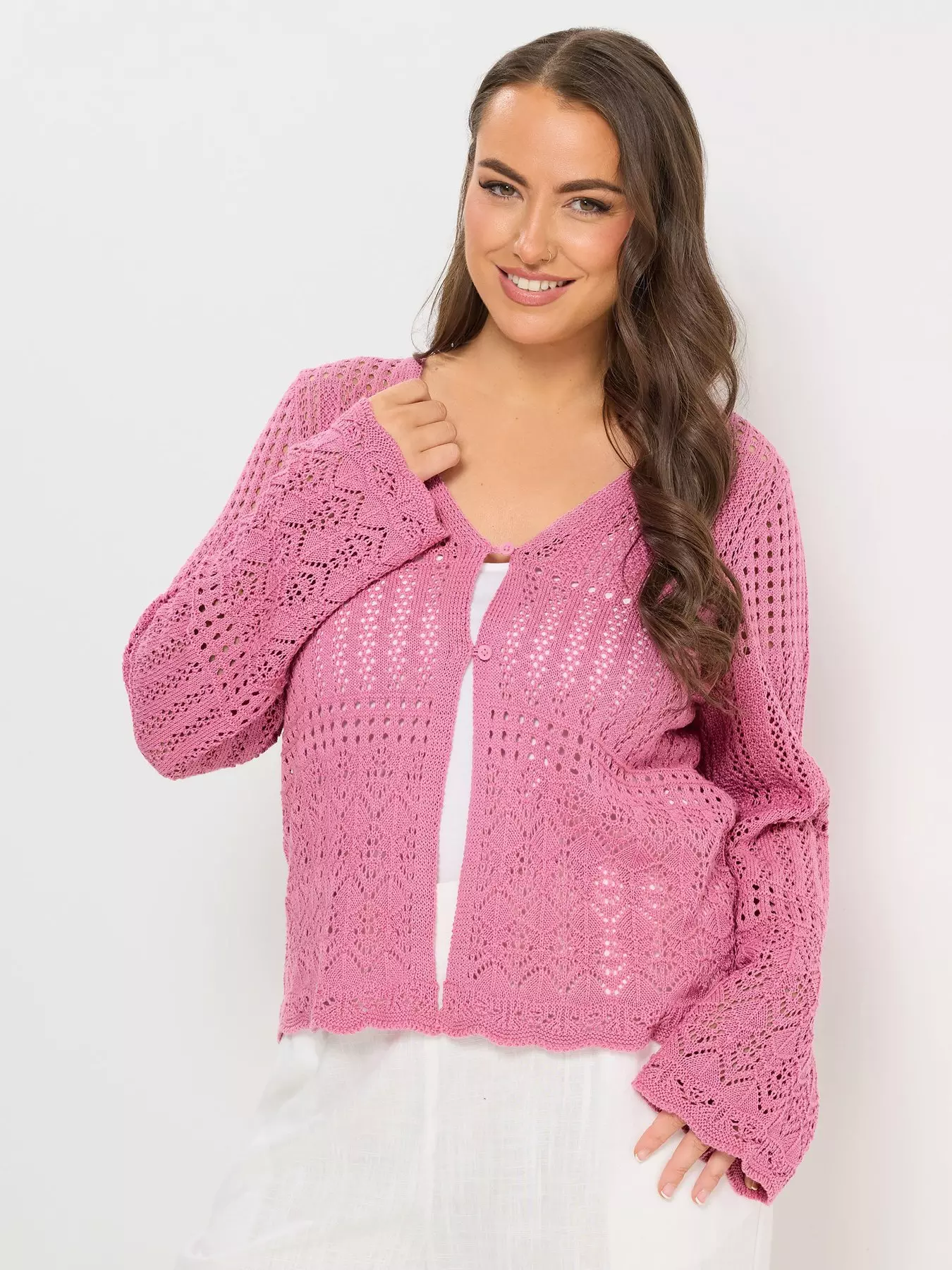 - Curve Pointelle Stitch Cardigan by Yours