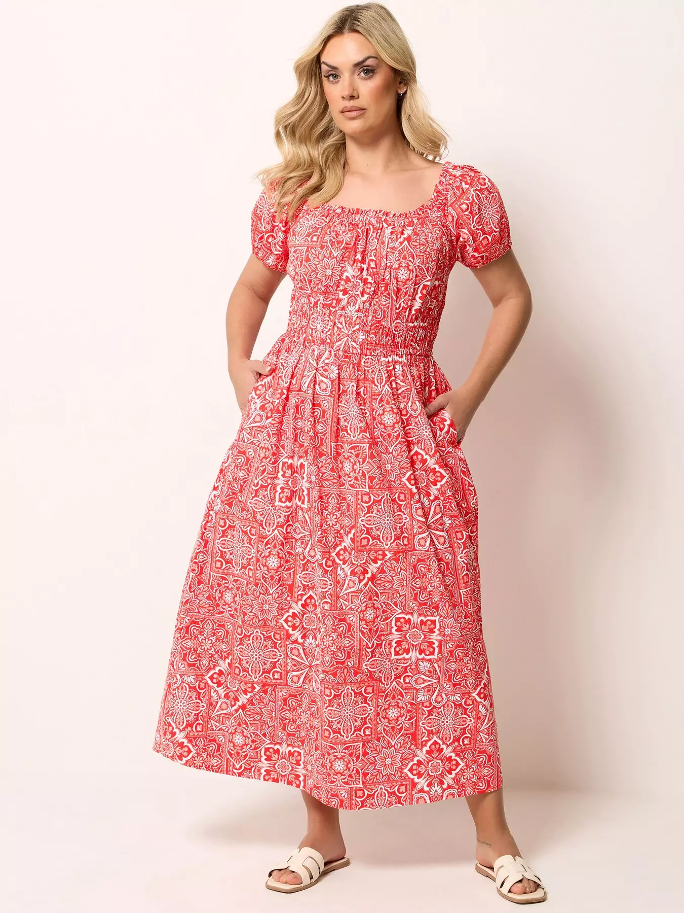 Yours Curve Poplin Midaxi Bardot Dress