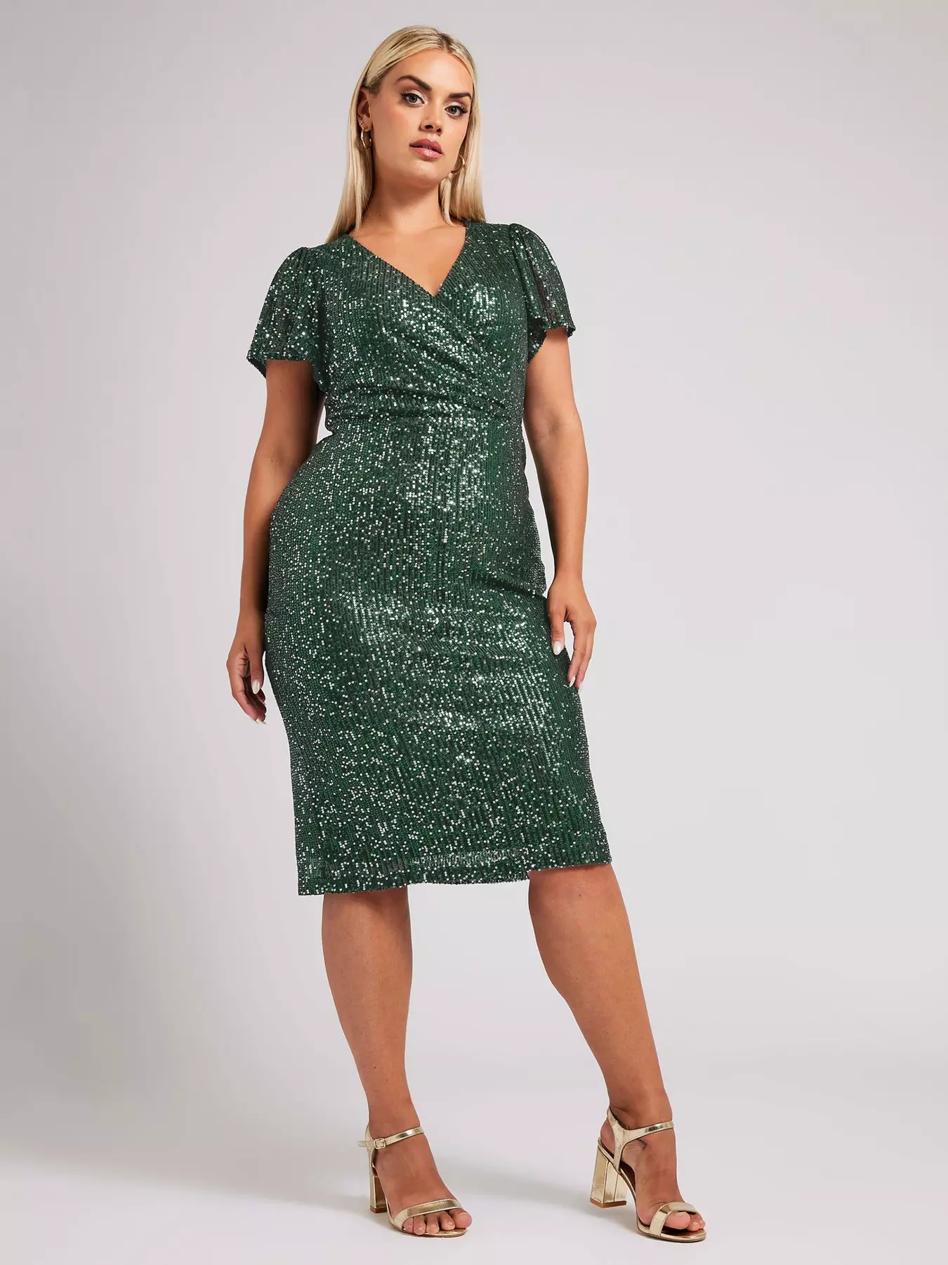 Sequin embellished, Wrap design, Angel style sleeves, Zipper fastening back, Midi length, V-neckline, Made from a flattering mesh fabric, 100 polyester, Length from approx: 116cm/45.7, Machine washableMaterial & Care