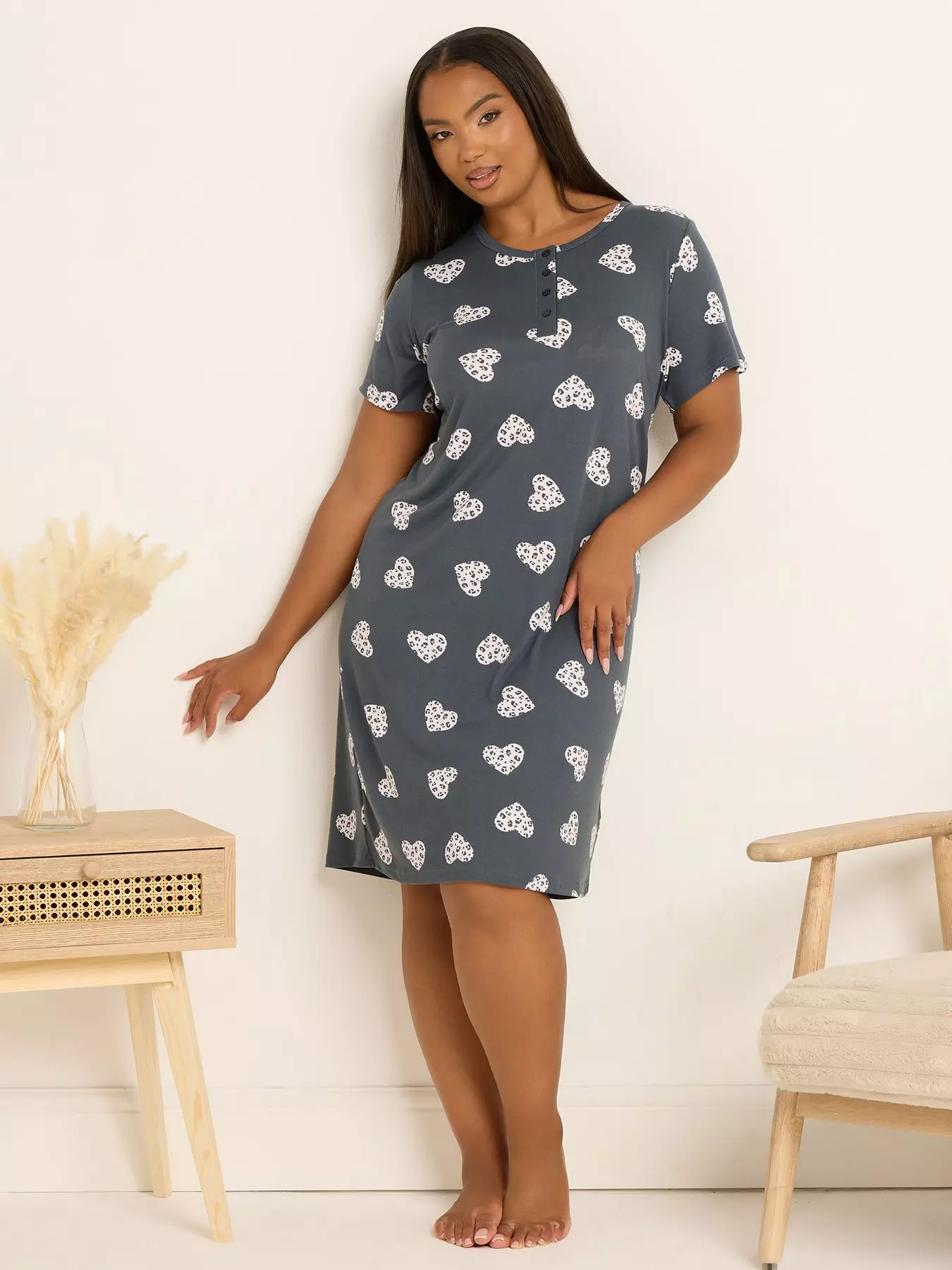 YoursCurve Soft Touch Heart Placket Nightdress - Grey