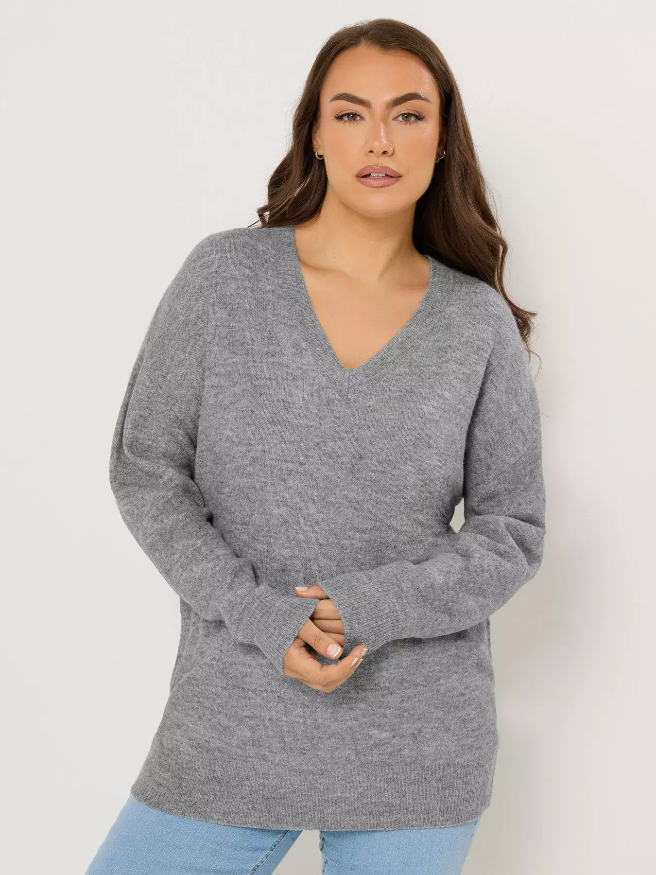 YoursCurve V Neck Soft Touch Jumper - Grey