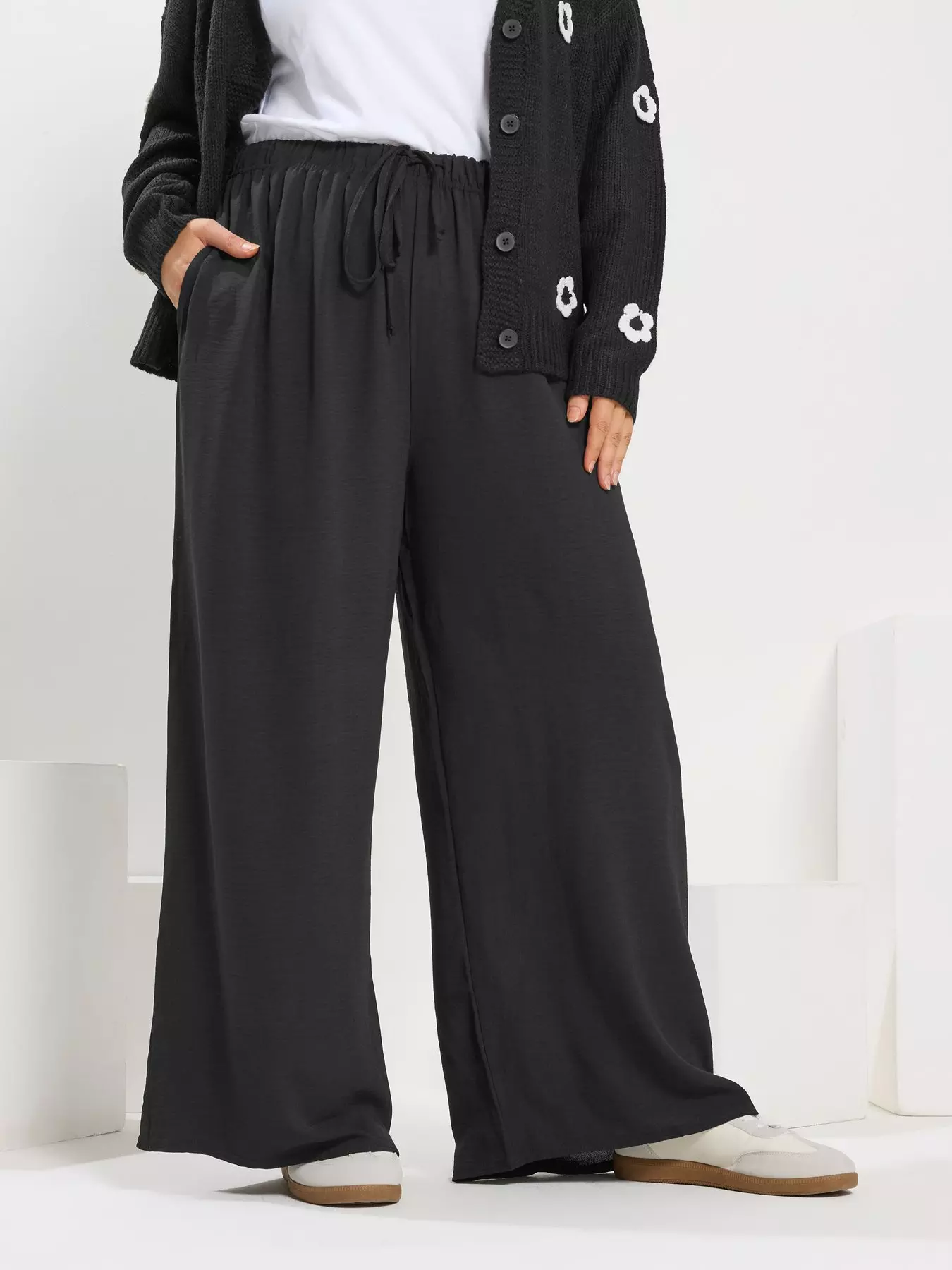 YoursCurve Washed Twill Wide Leg Trouser 26" - Black