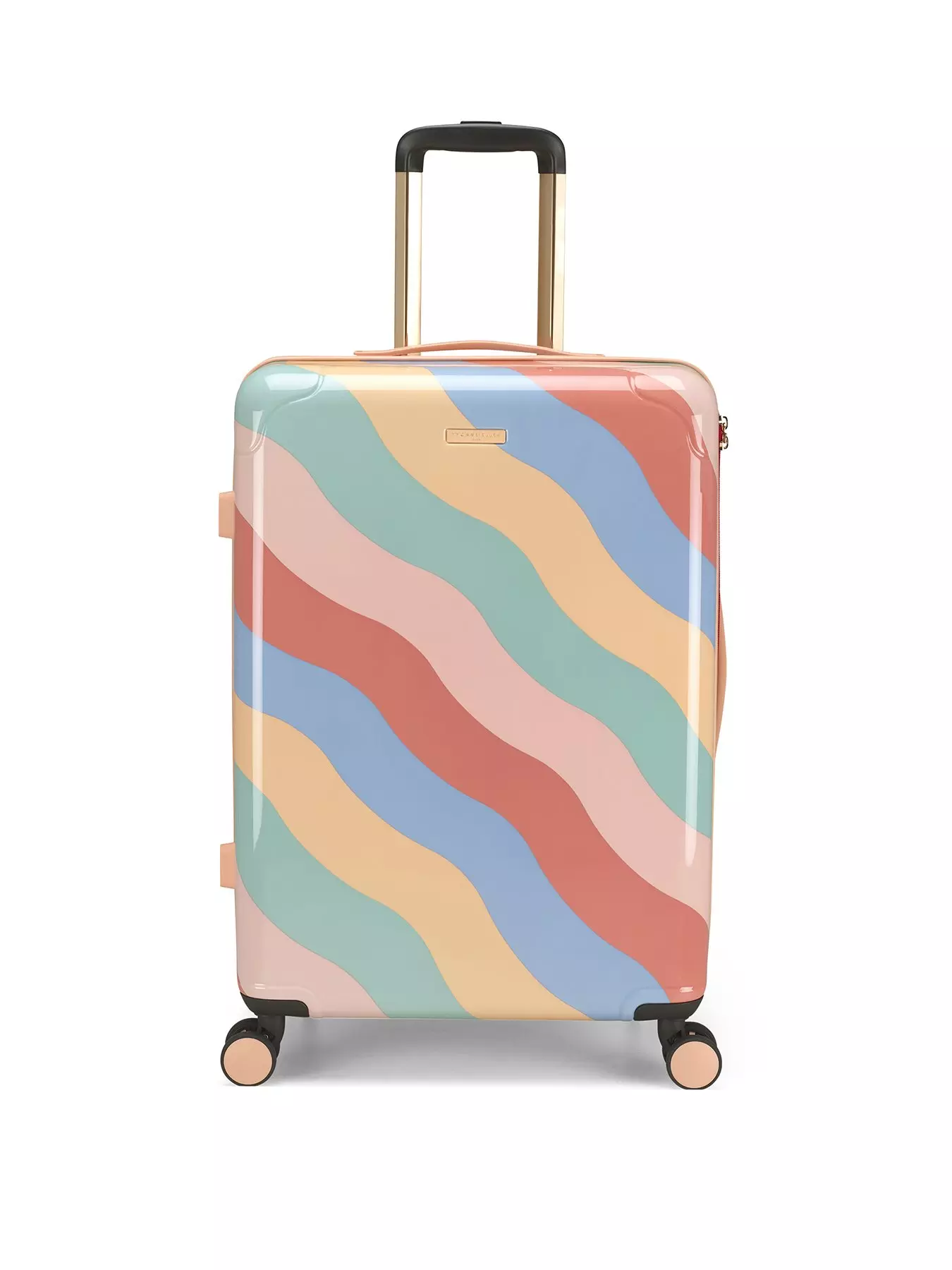 Add a touch of charm to your travels with Yvonne Ellen Luggage. This playful yet practical hardside cabin case showcases Yvonne Ellen's signature whimsical illustrations, designed to be both lightweight and durable for every journey. The playful Wobble Stripe print is full of character and style, enhanced with delightful detailing that makes it truly stand out.Function meets flair with four smooth-rolling spinner wheels for easy manoeuvrability, an integrated TSA lock for secure international travel, and a lightweight aluminium trolley system with a soft-touch handle. Finished with elegant hardware and Yvonne Ellen's iconic design accents, this cabin case is the perfect blend of personality and practicality.